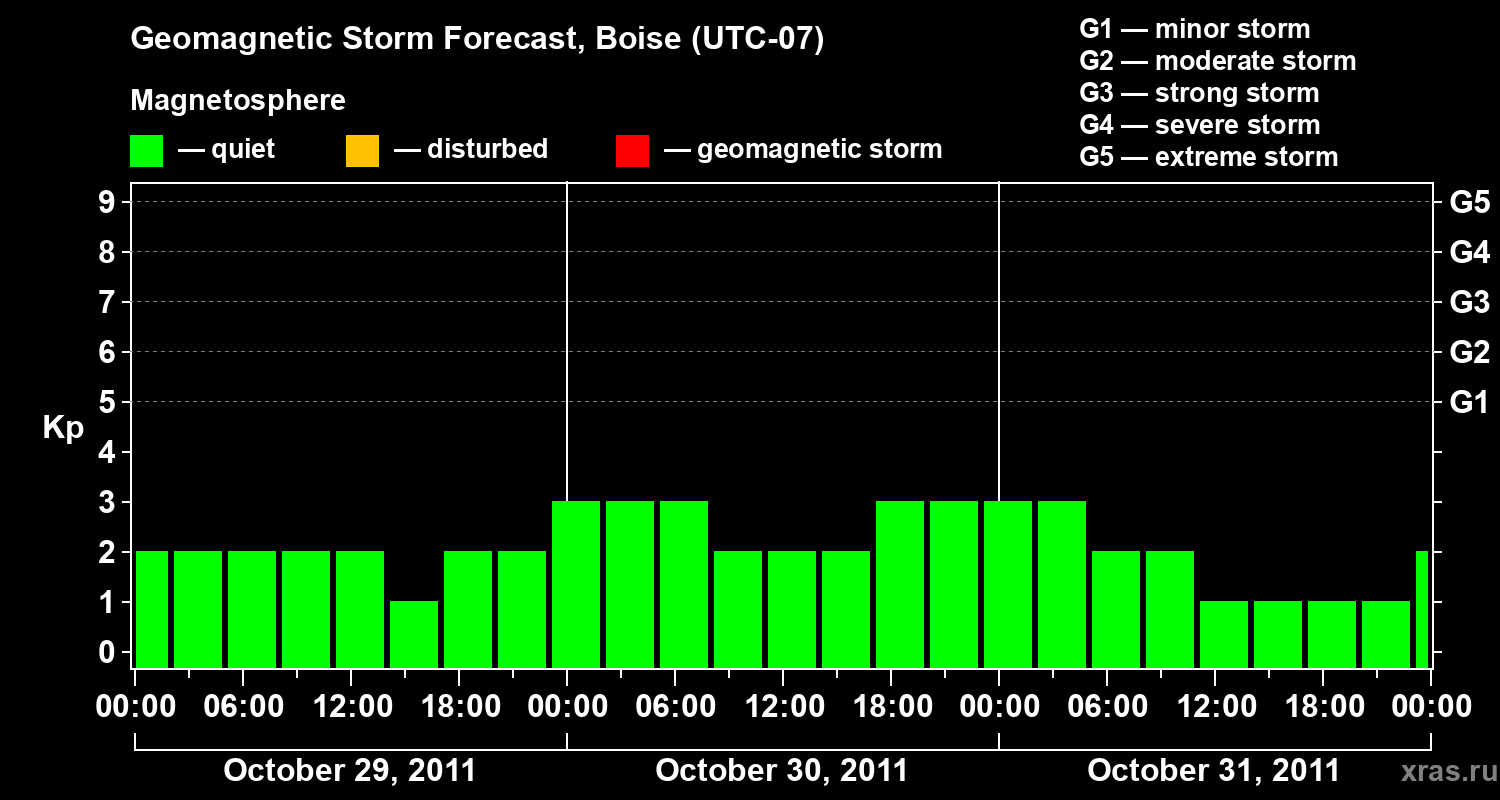Geomagnetic storm forecast in Boise for Oct 29, 2011