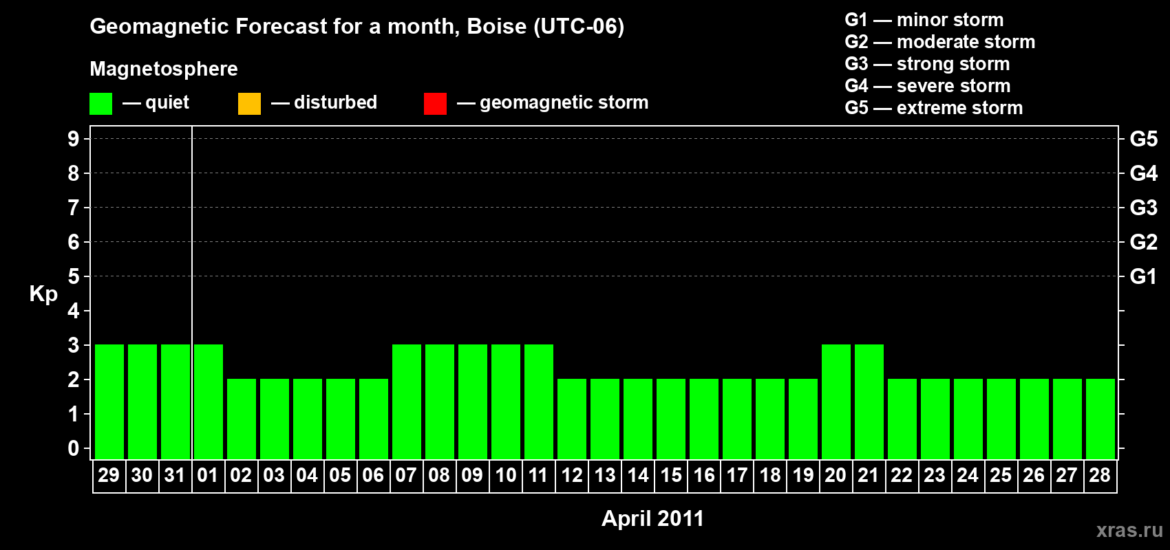 Geomagnetic activity forecast in Boise — Mar 29, 2011