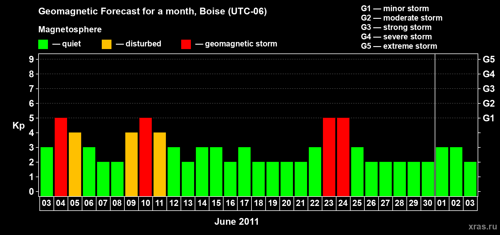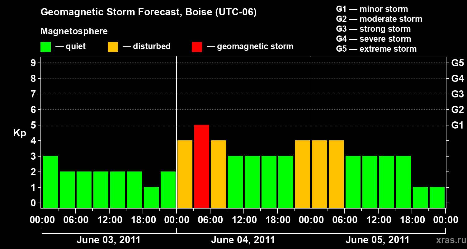 Geomagnetic storm forecast in Boise for Jun 03, 2011