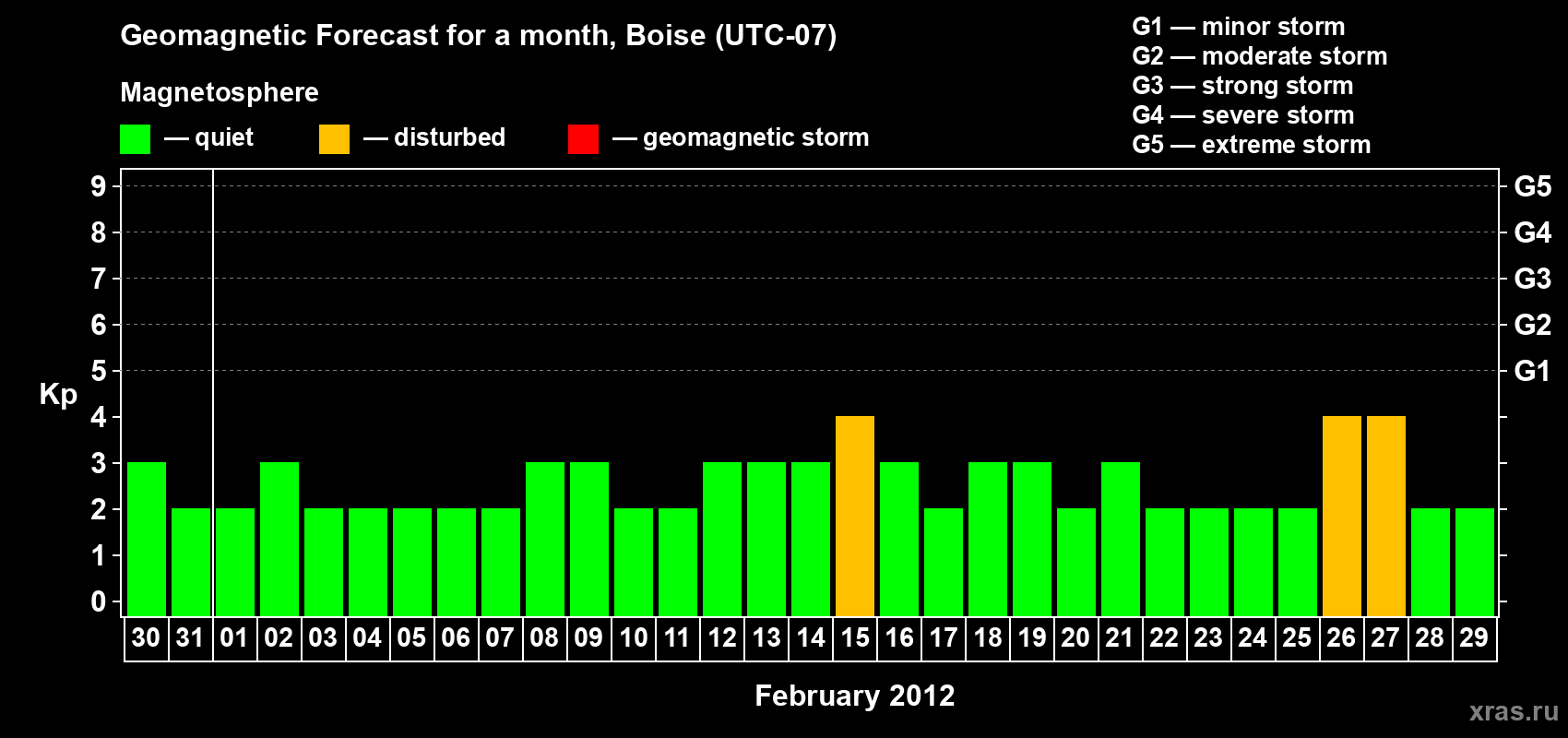 Geomagnetic storm forecast in Boise for Jan 30, 2012