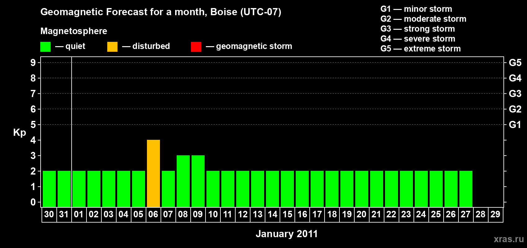 Geomagnetic storm forecast in Boise for Dec 30, 2010