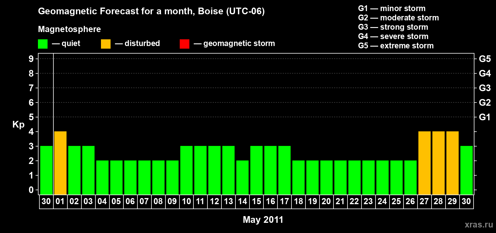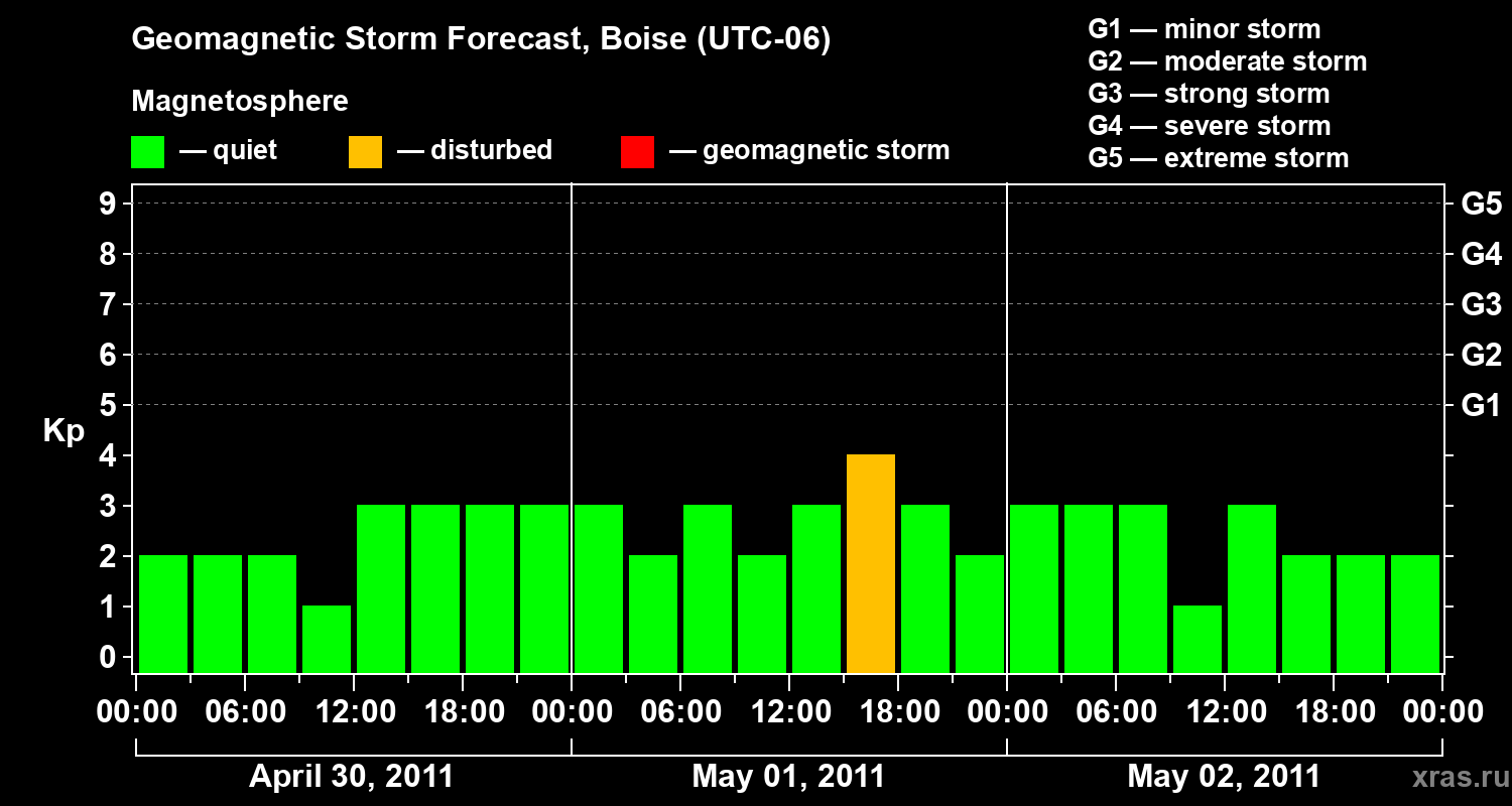 Geomagnetic storm forecast in Boise for Apr 30, 2011