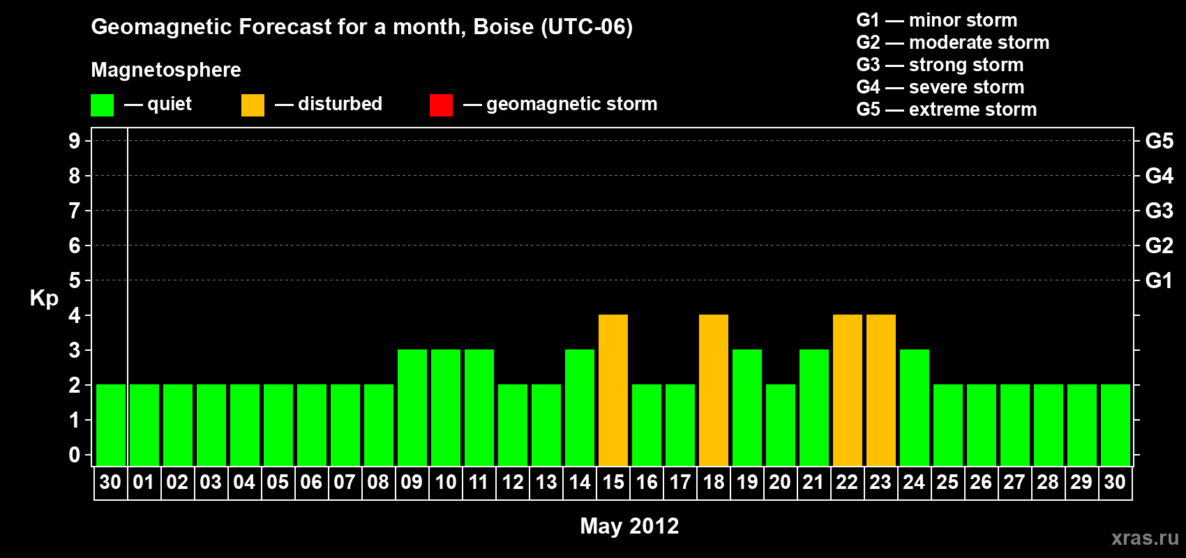 Geomagnetic storm forecast in Boise for Apr 30, 2012