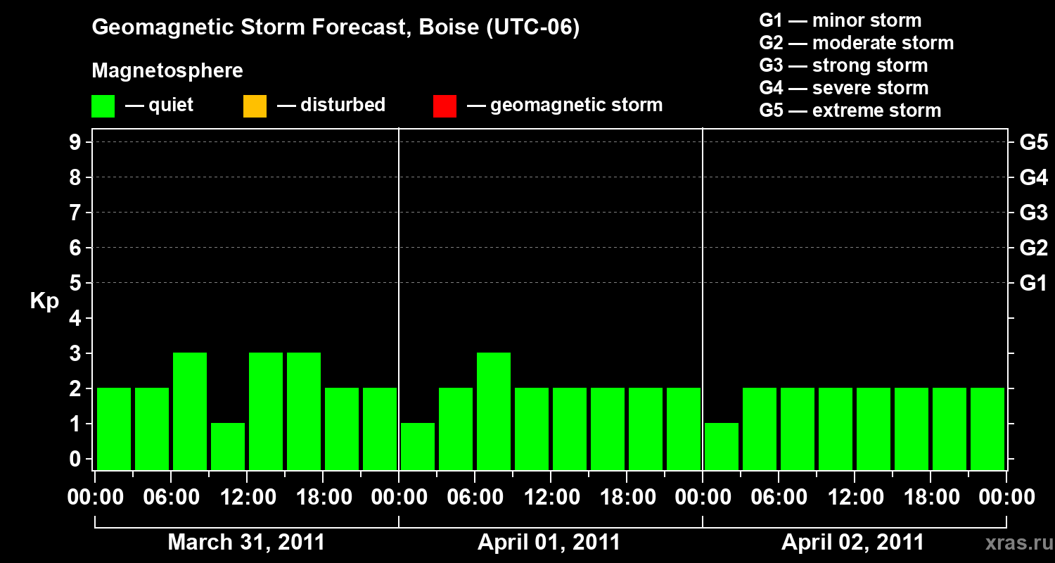 Geomagnetic storm forecast in Boise for Mar 31, 2011