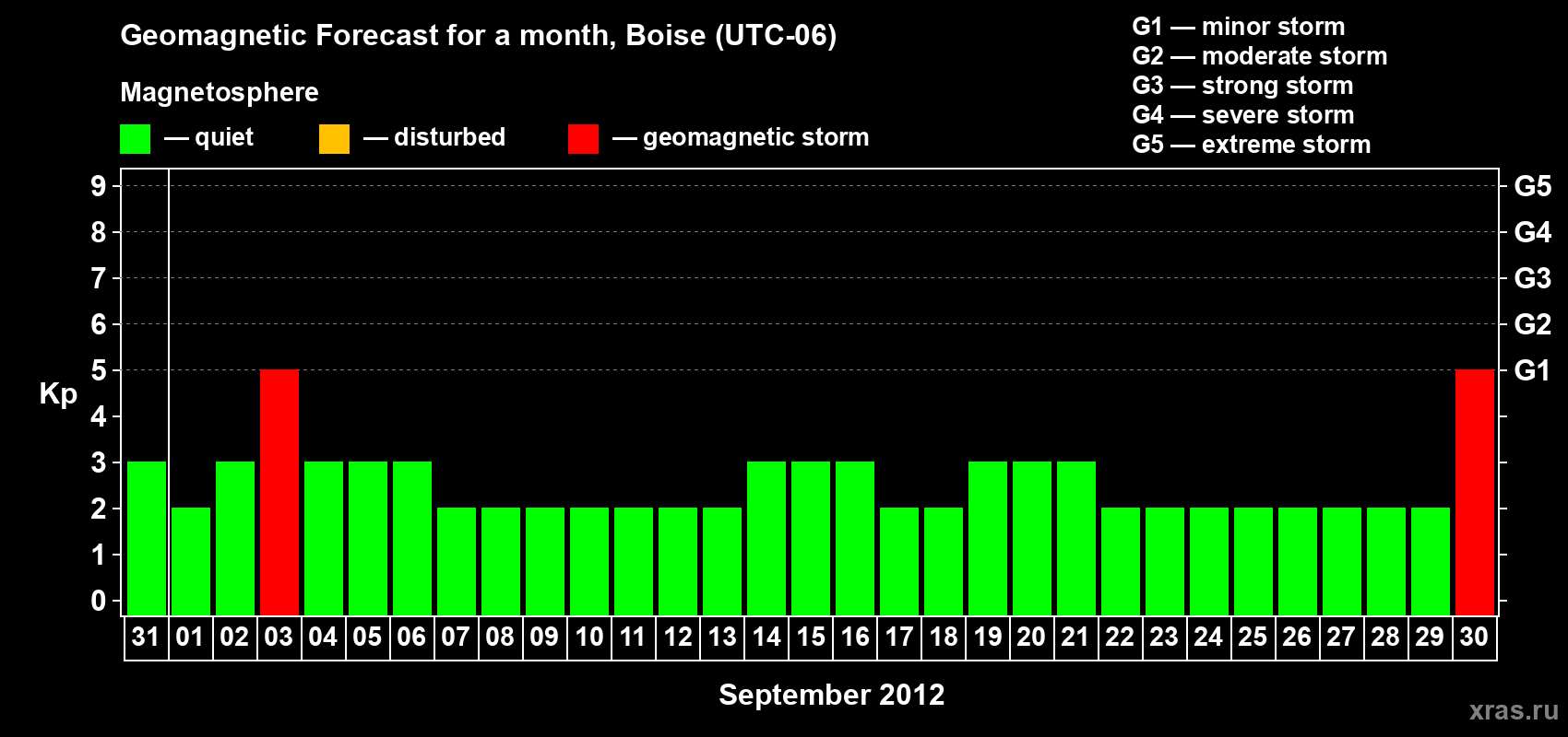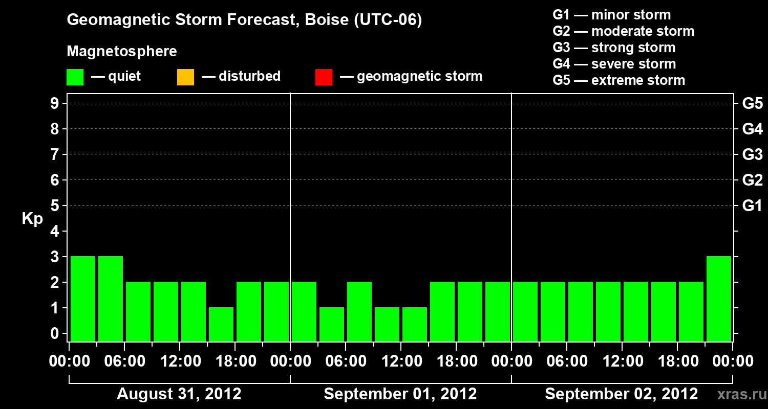 Geomagnetic storm forecast in Boise for Aug 31, 2012