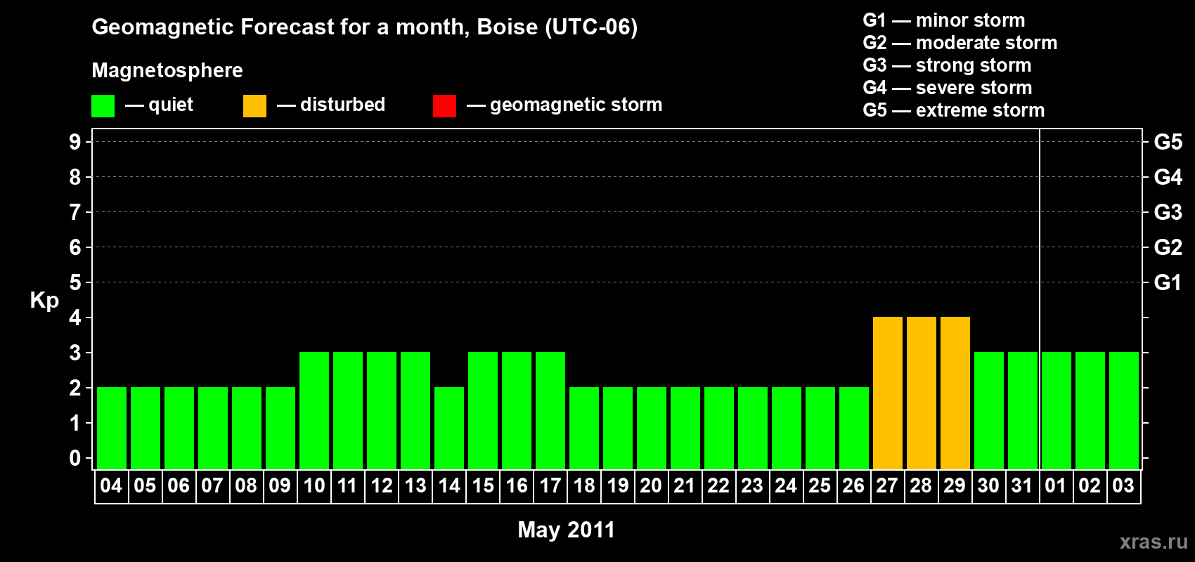 Geomagnetic storm forecast in Boise for May 04, 2011