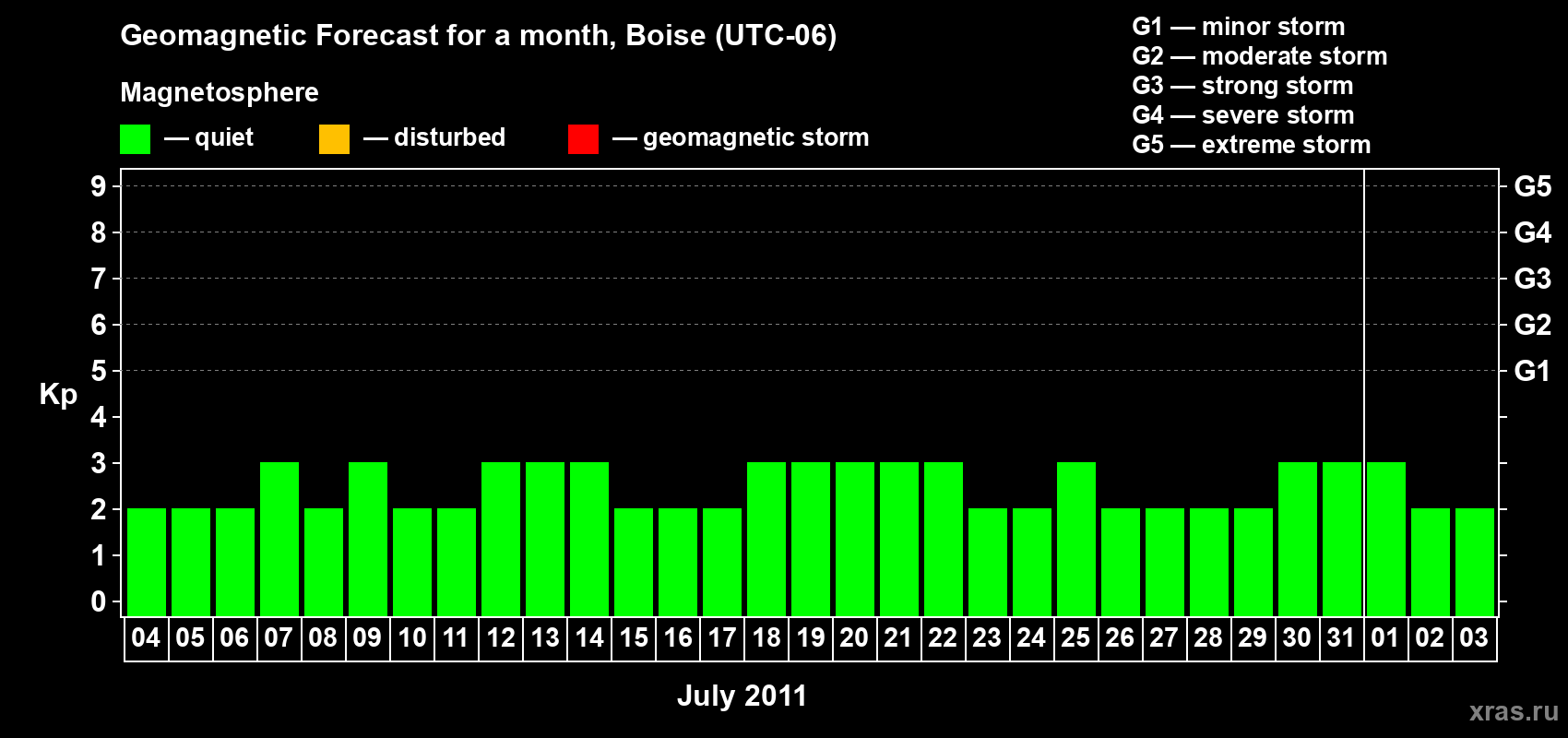 Geomagnetic storm forecast in Boise for Jul 04, 2011