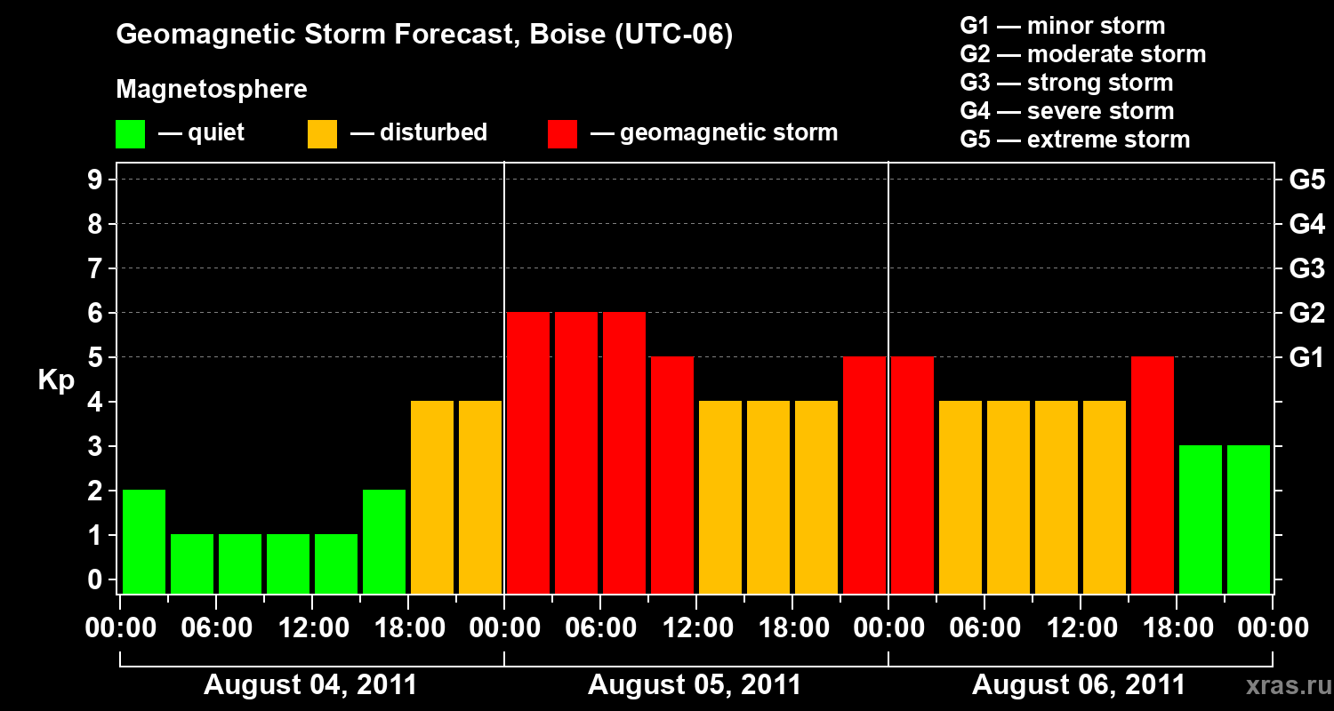 Geomagnetic storm forecast in Boise for Aug 04, 2011