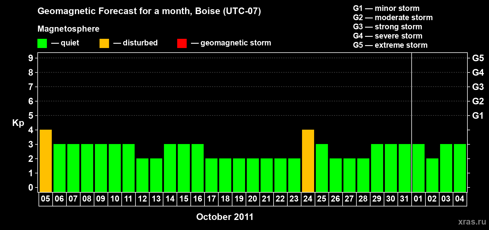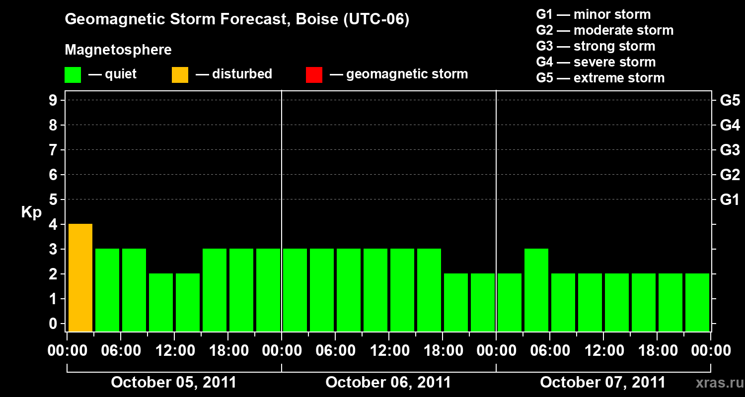 Geomagnetic storm forecast in Boise for Oct 05, 2011