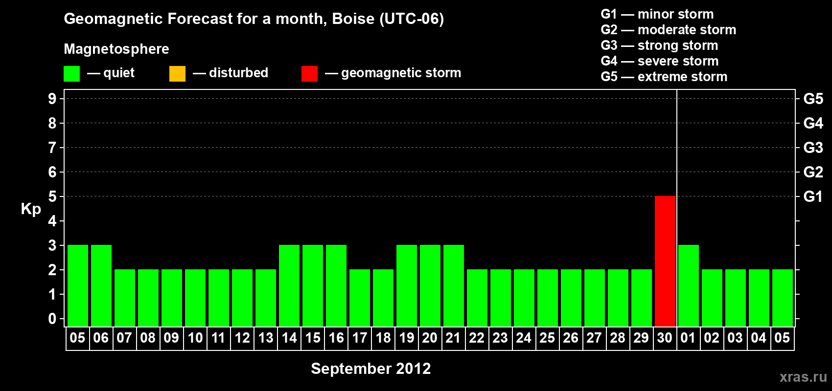 Geomagnetic storm forecast in Boise for Sep 05, 2012