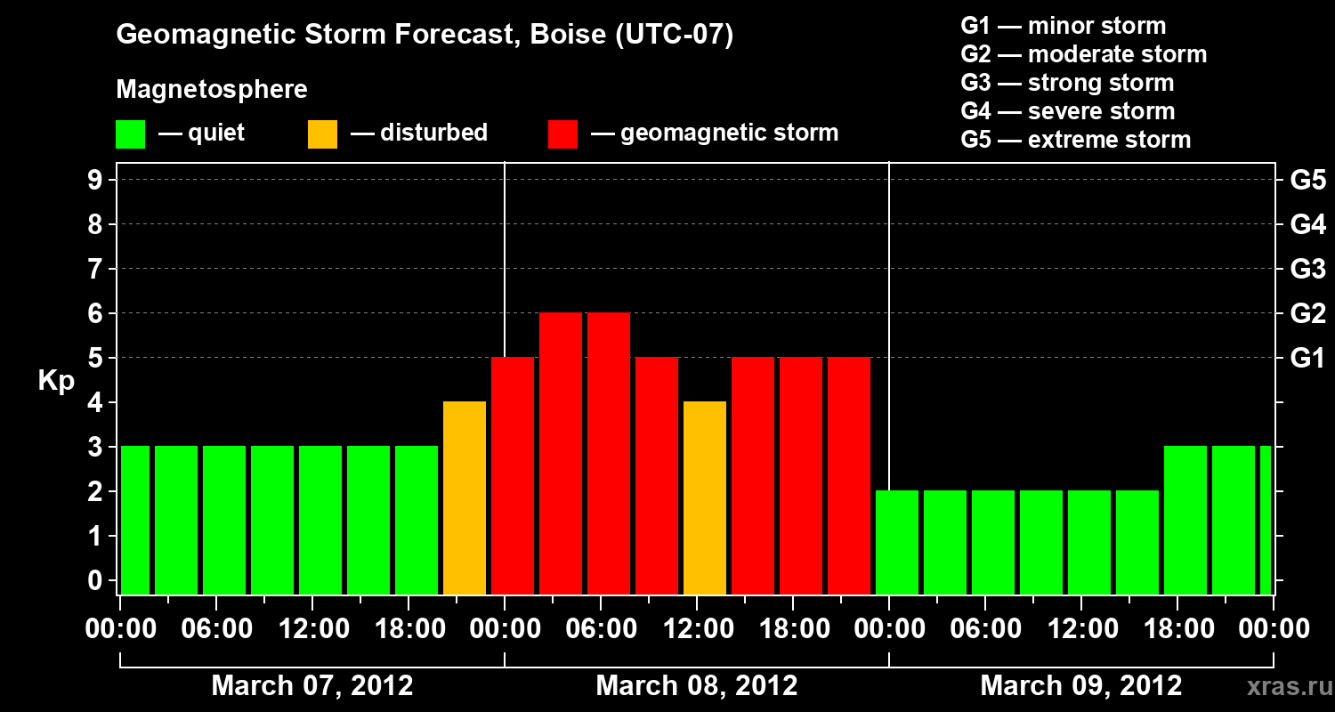 Geomagnetic storm forecast in Boise for Mar 07, 2012
