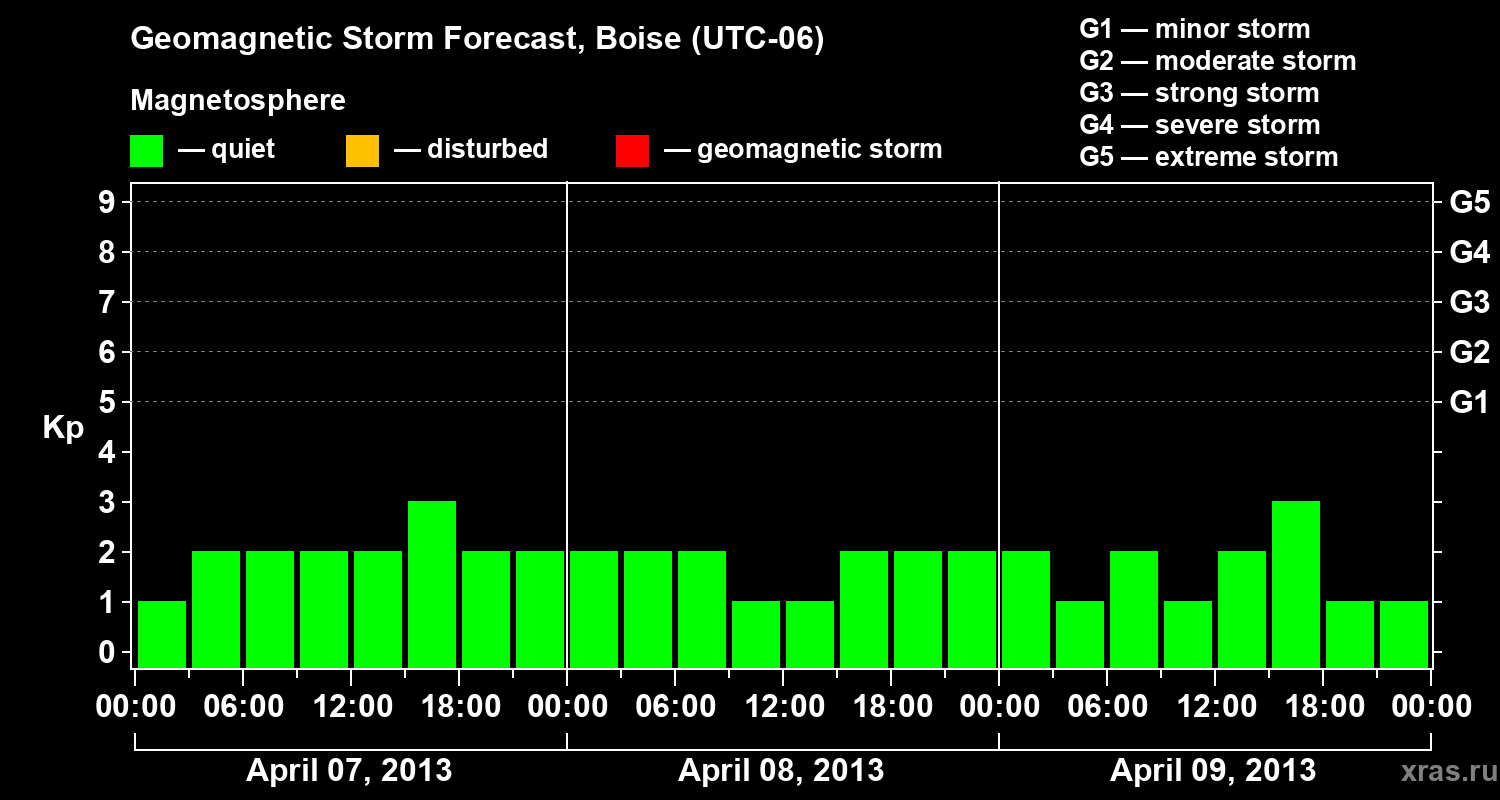 Geomagnetic storm forecast in Boise for Apr 07, 2013