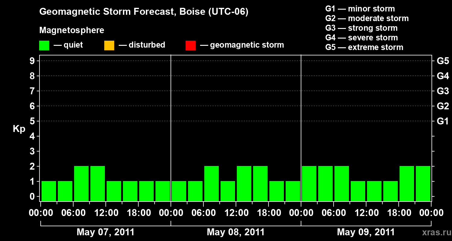 Geomagnetic storm forecast in Boise for May 07, 2011