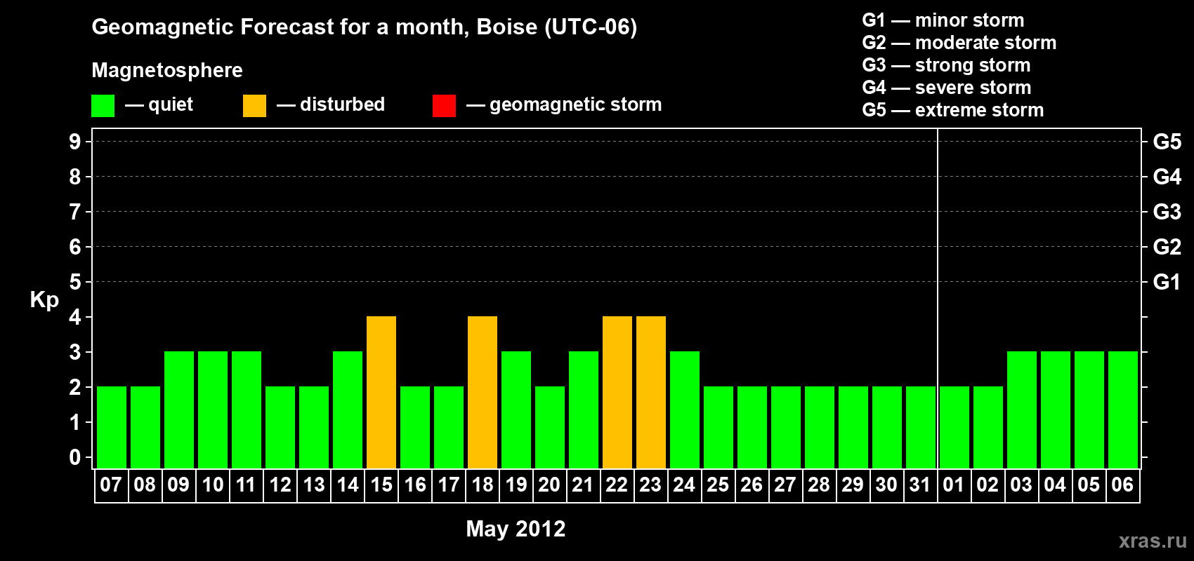 Geomagnetic storm forecast in Boise for May 07, 2012