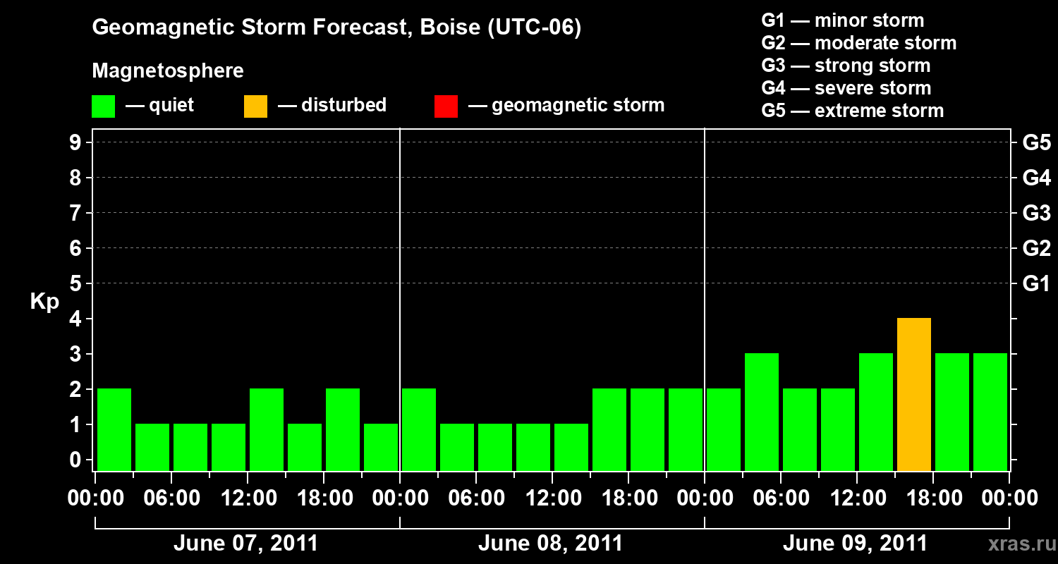 Geomagnetic storm forecast in Boise for Jun 07, 2011