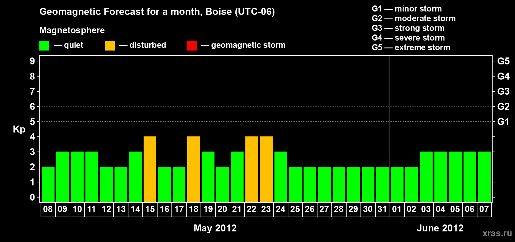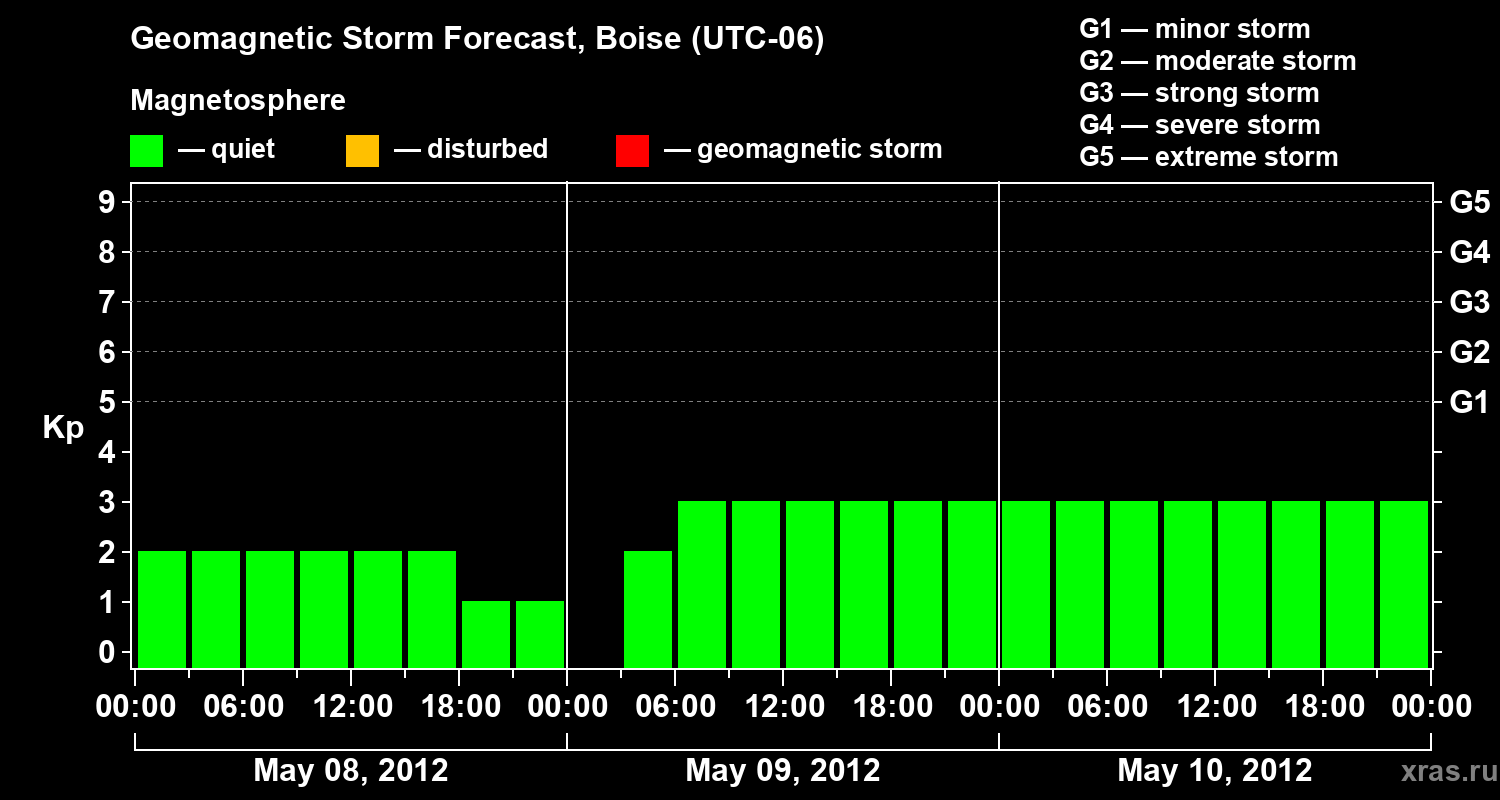 Geomagnetic storm forecast in Boise for May 08, 2012