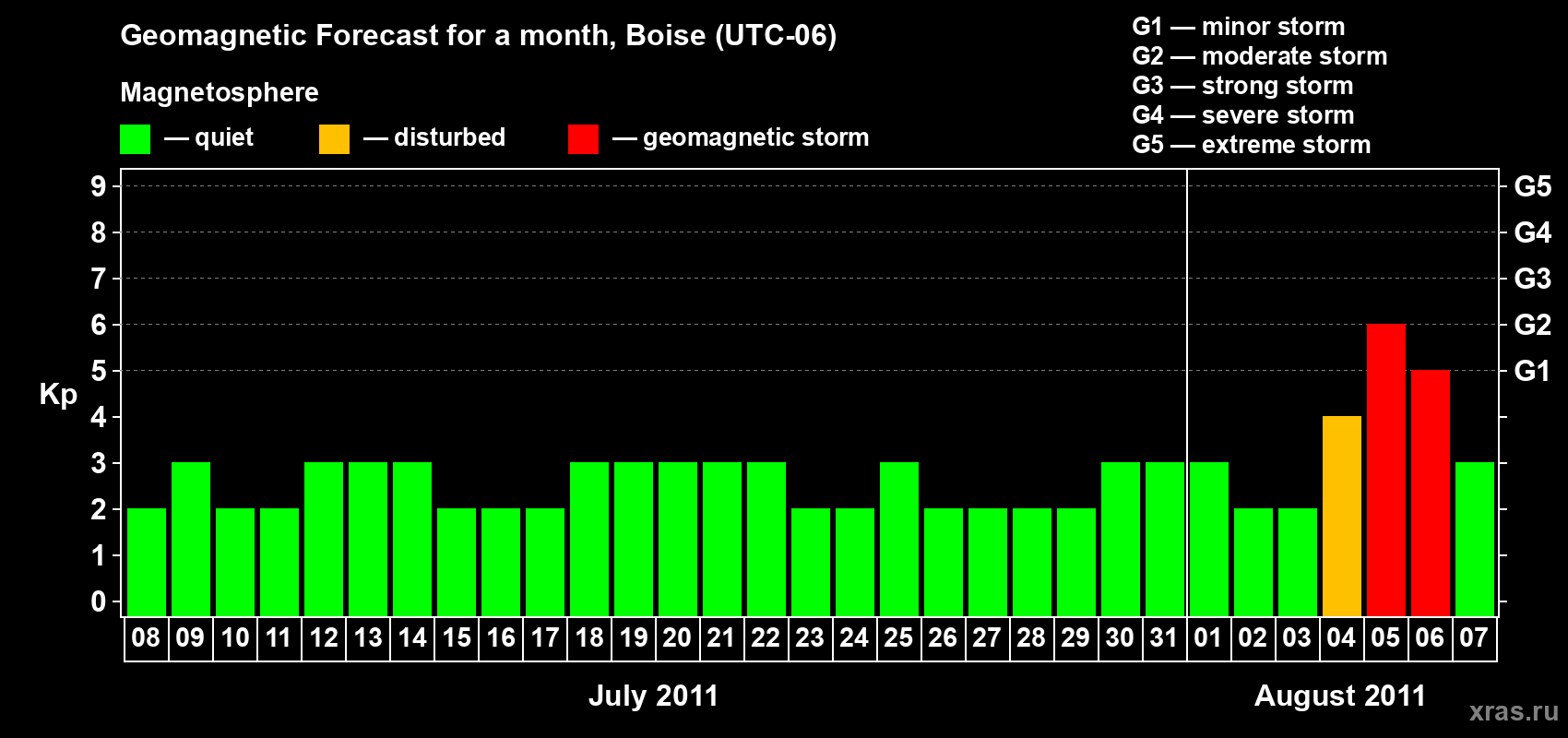 Geomagnetic storm forecast in Boise for Jul 08, 2011