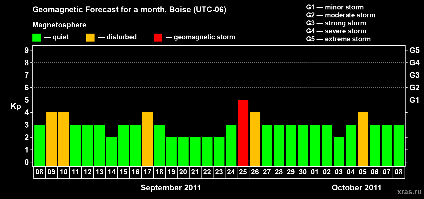 Geomagnetic storm forecast in Boise for Sep 08, 2011
