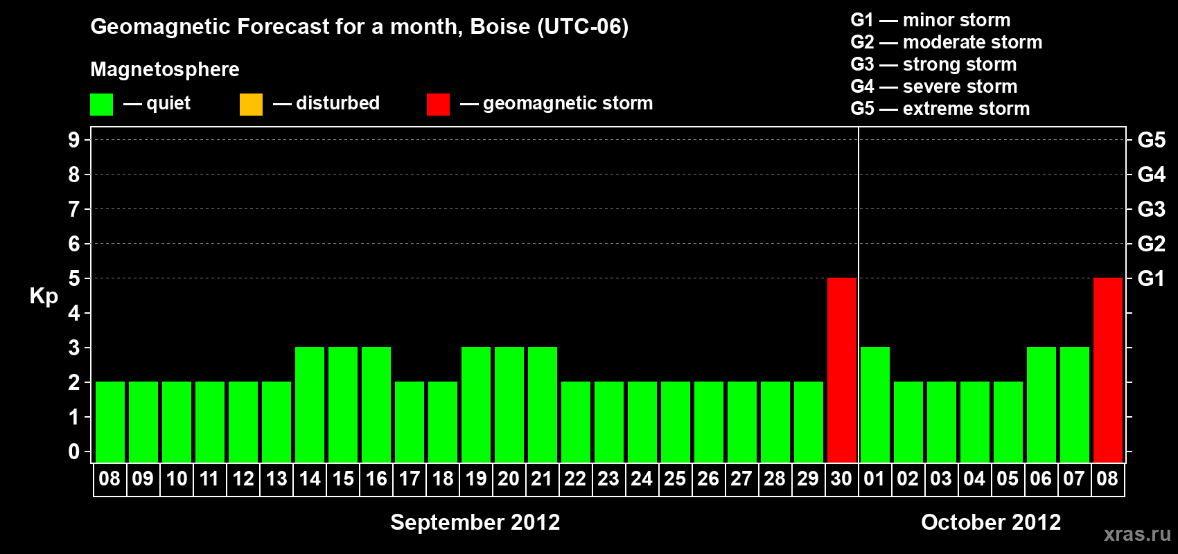Geomagnetic storm forecast in Boise for Sep 08, 2012
