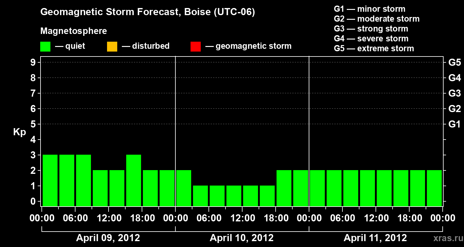 Geomagnetic storm forecast in Boise for Apr 09, 2012