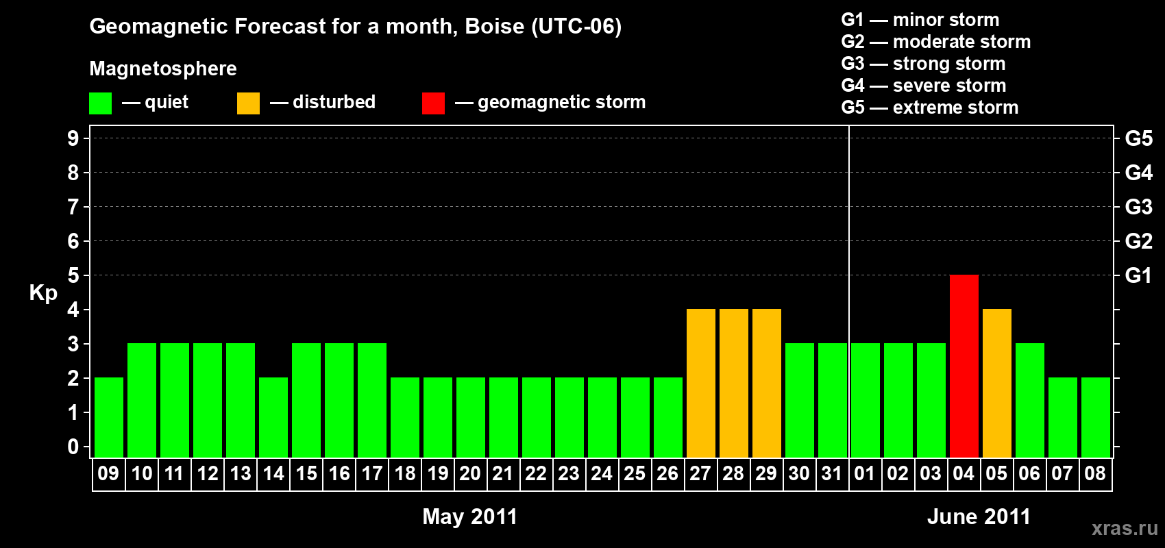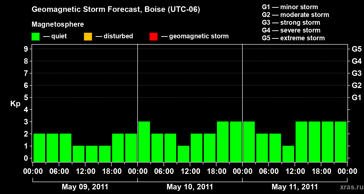 Geomagnetic storm forecast in Boise for May 09, 2011