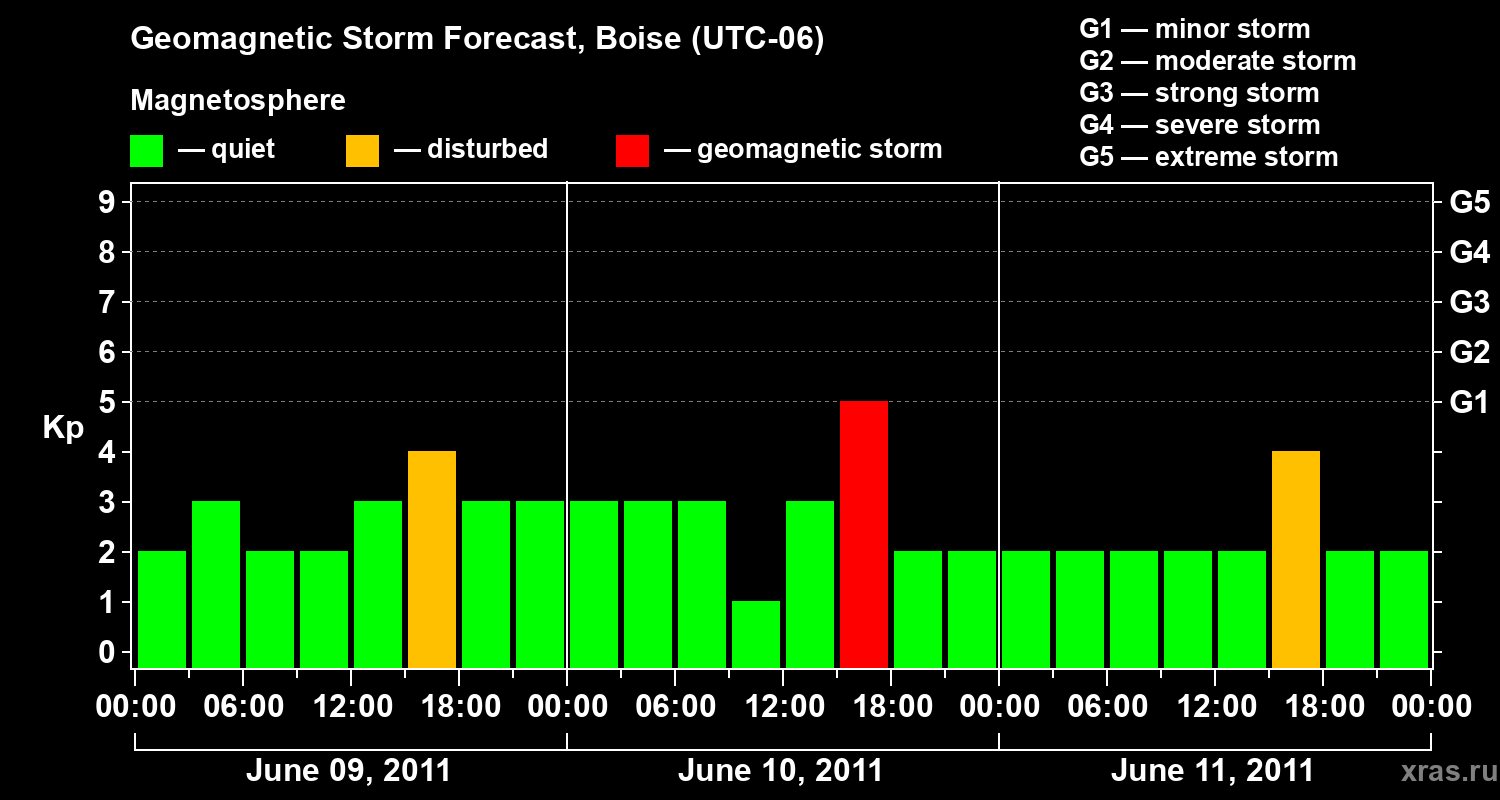 Geomagnetic storm forecast in Boise for Jun 09, 2011