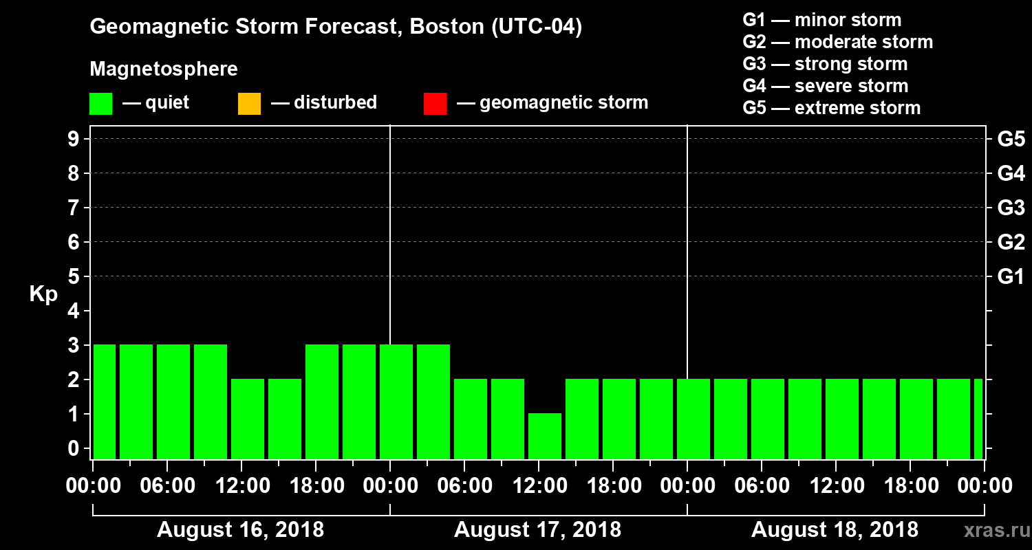 Geomagnetic storm forecast in Boston for Aug 16, 2018