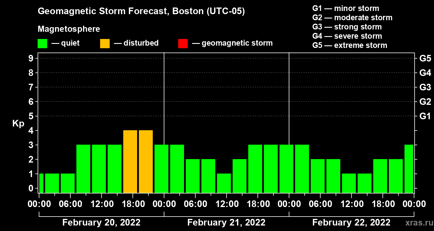 Geomagnetic storm forecast in Boston for Feb 20, 2022
