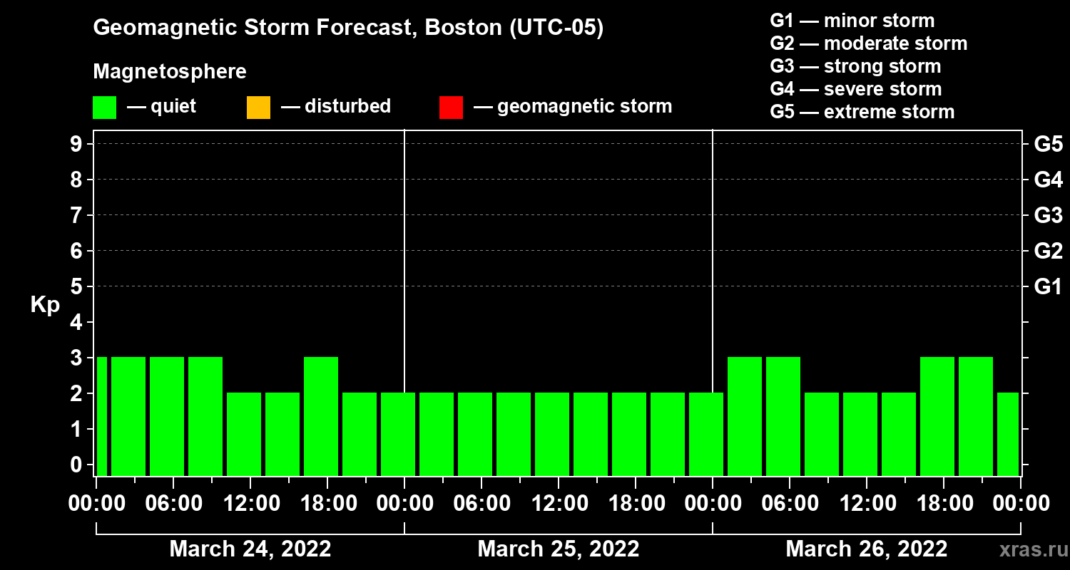 Geomagnetic activity forecast in Boston — Mar 24, 2022