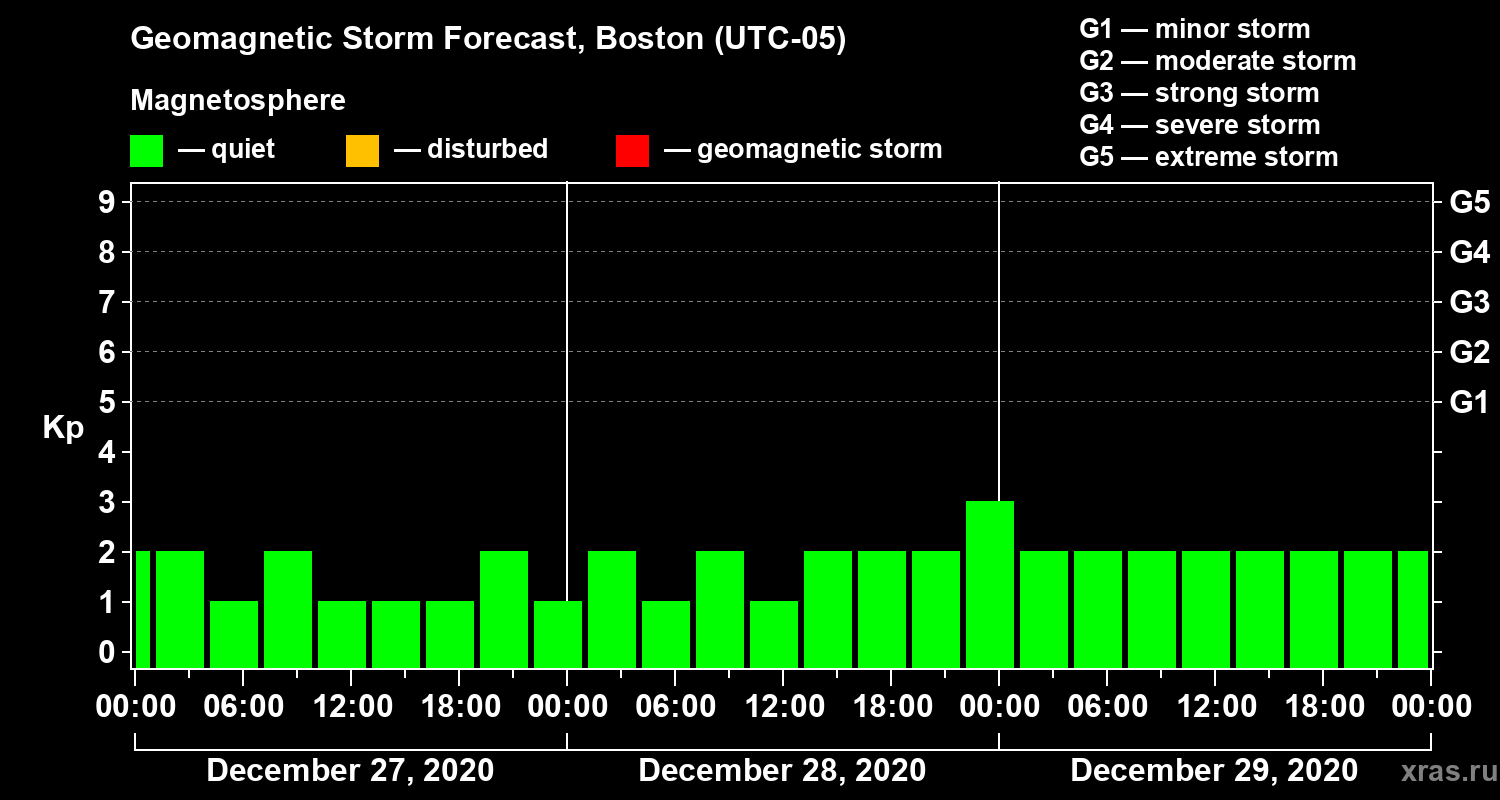 Geomagnetic storm forecast in Boston for Dec 27, 2020