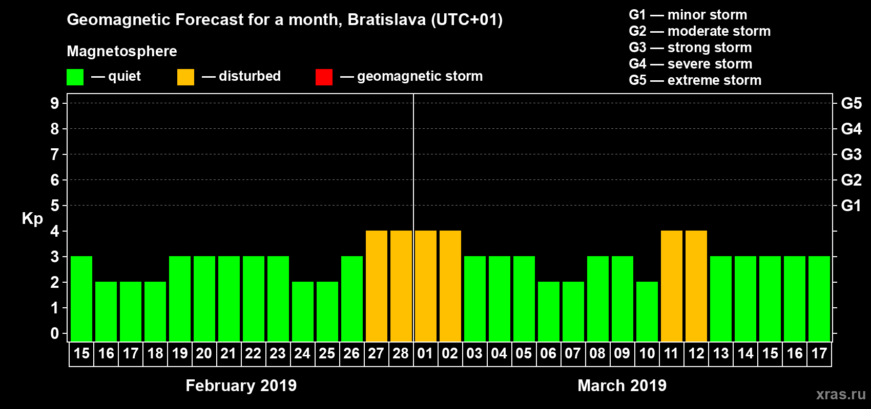 Geomagnetic activity forecast in Bratislava — Feb 15, 2019