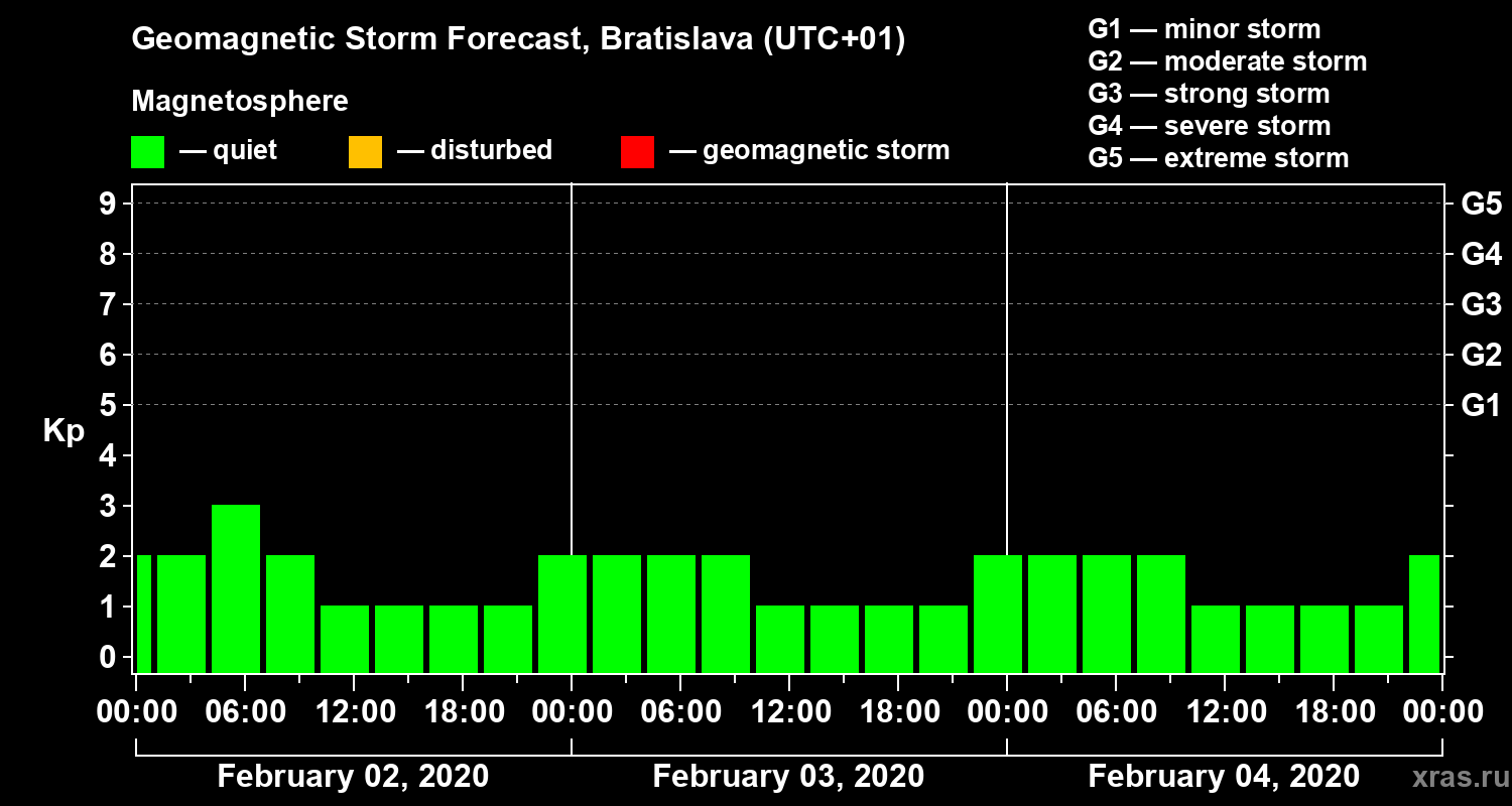 Geomagnetic storm forecast in Bratislava for Feb 02, 2020