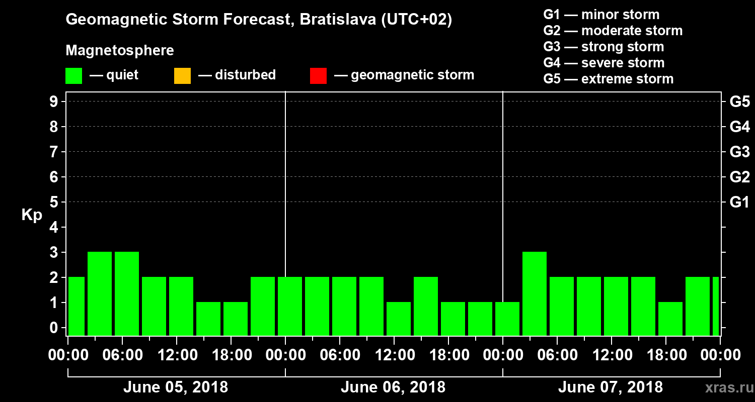 Geomagnetic activity forecast in Bratislava — Jun 05, 2018
