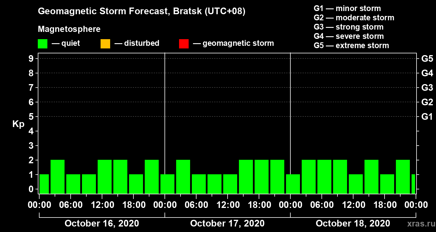 Geomagnetic storm forecast in Bratsk for Oct 16, 2020
