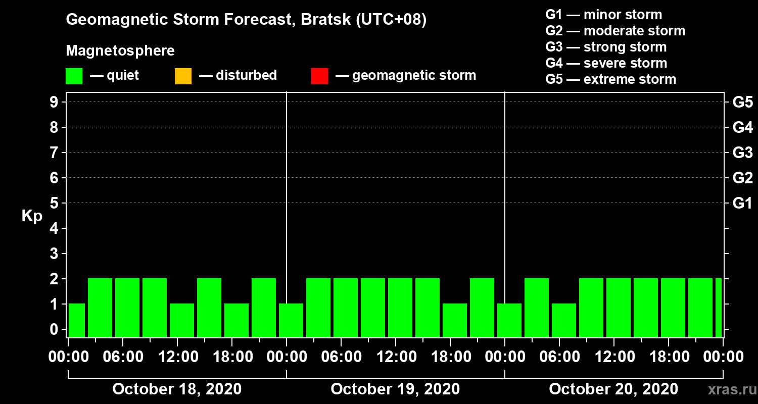 Geomagnetic storm forecast in Bratsk for Oct 18, 2020