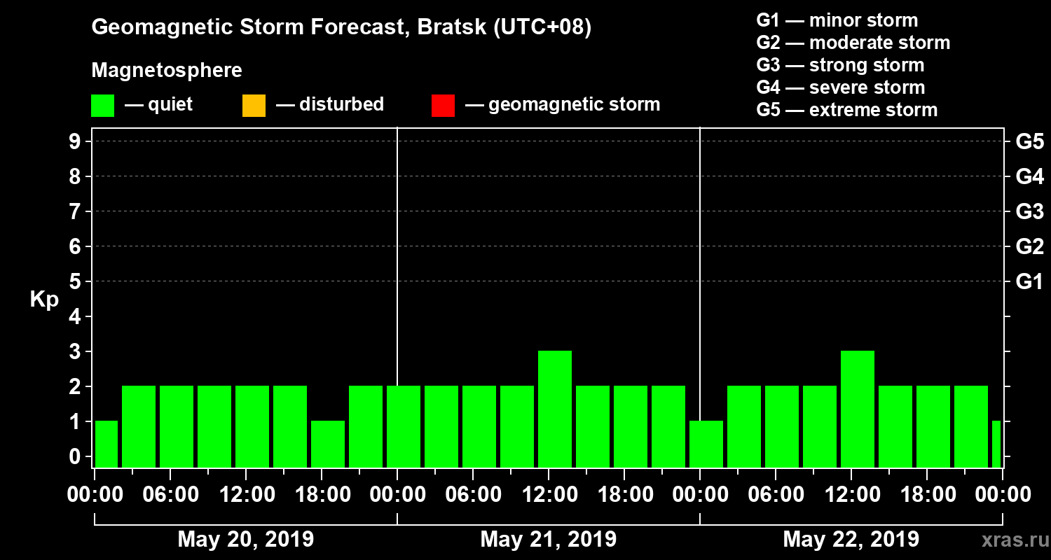 Geomagnetic storm forecast in Bratsk for May 20, 2019