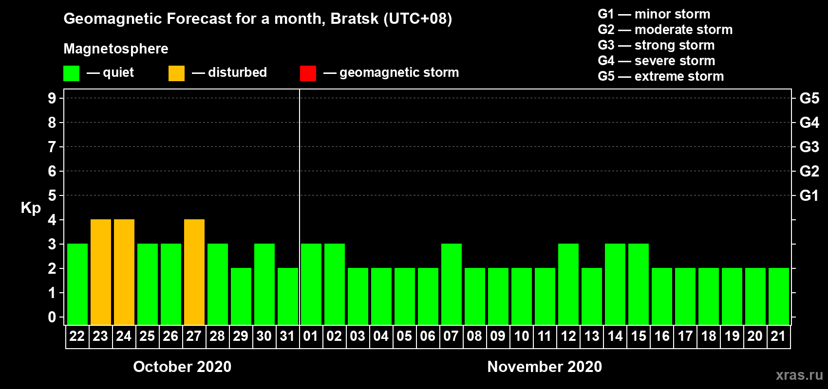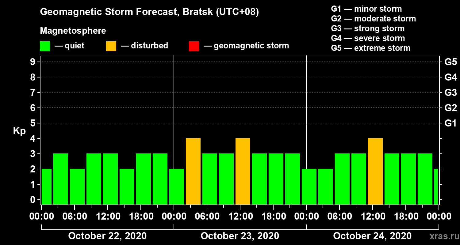 Geomagnetic storm forecast in Bratsk for Oct 22, 2020