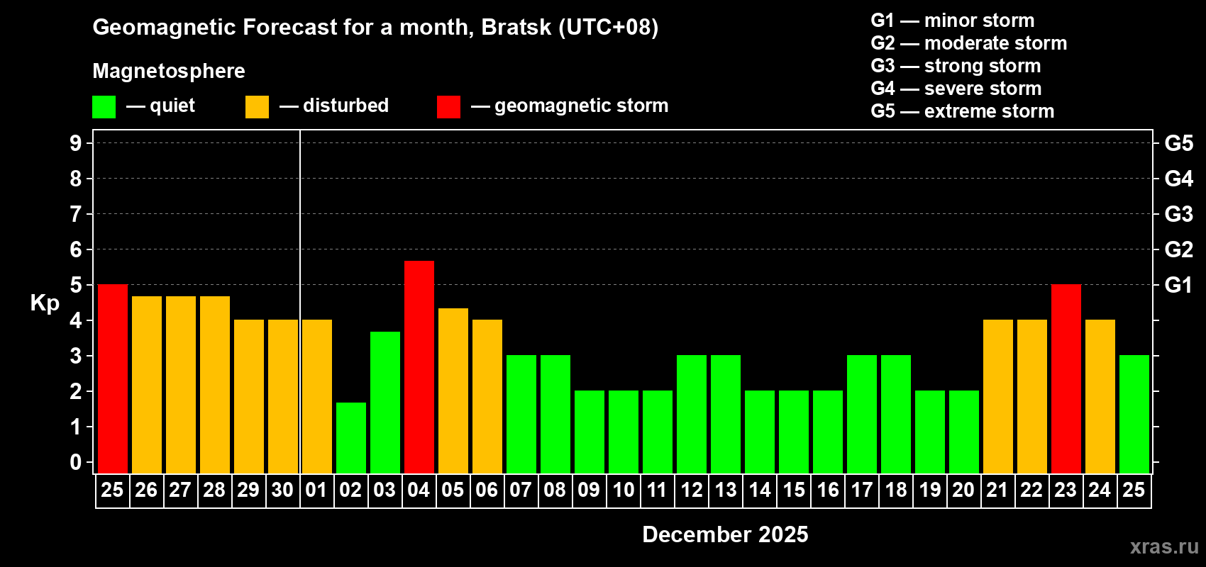 Geomagnetic storm forecast in Bratsk for Nov 25, 2025