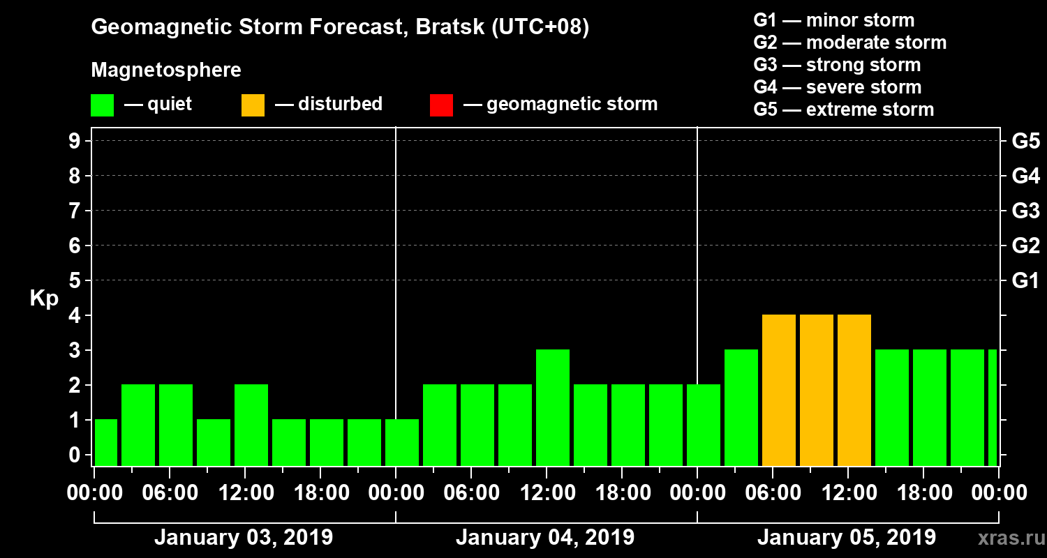 Geomagnetic storm forecast in Bratsk for Jan 03, 2019