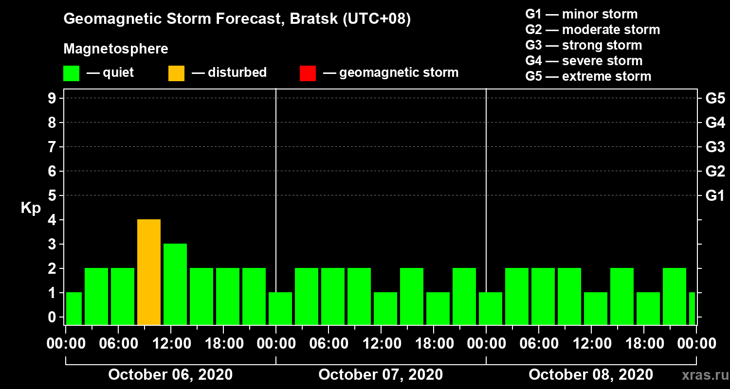 Geomagnetic storm forecast in Bratsk for Oct 06, 2020