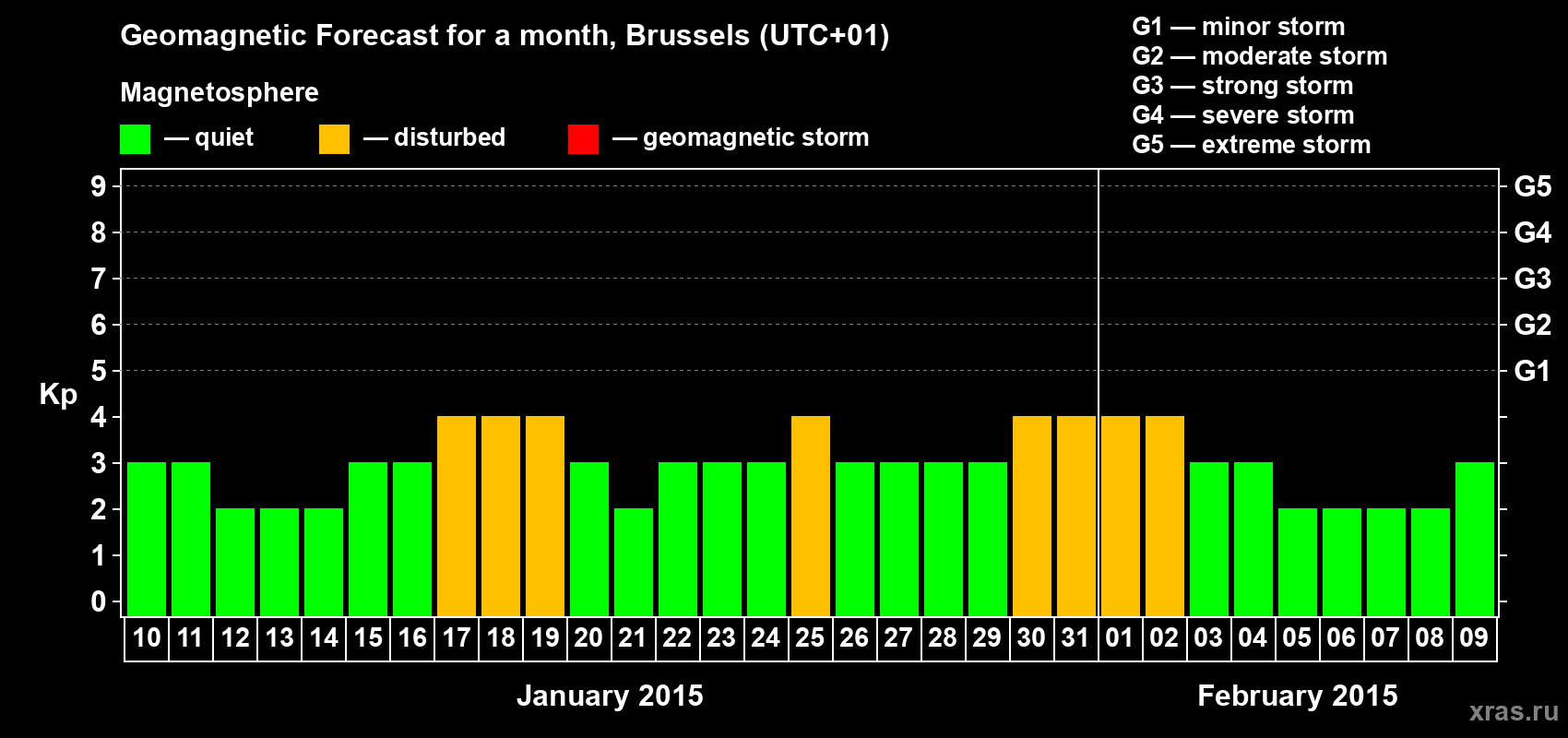 Geomagnetic storm forecast in Brussels for Jan 10, 2015