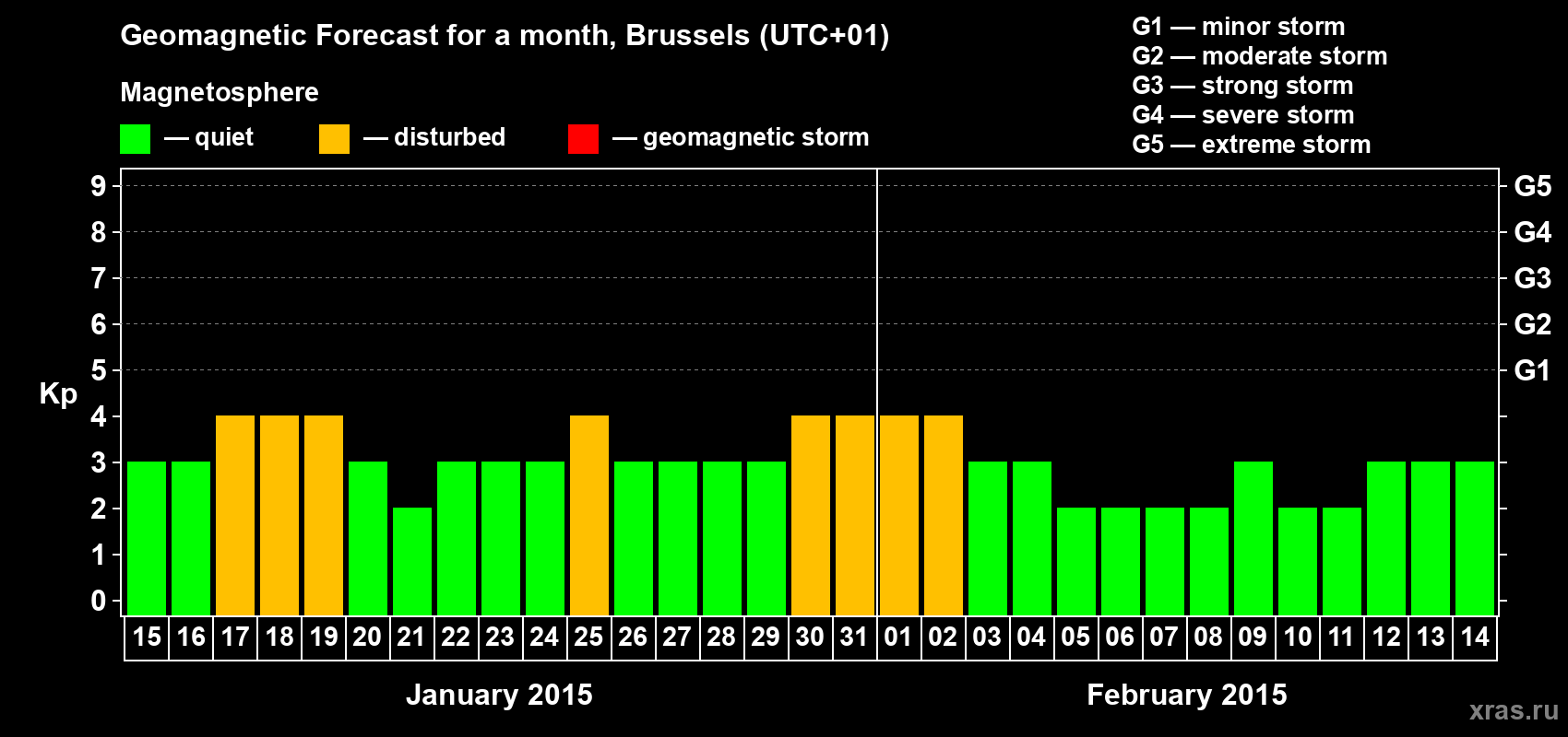 Geomagnetic storm forecast in Brussels for Jan 15, 2015