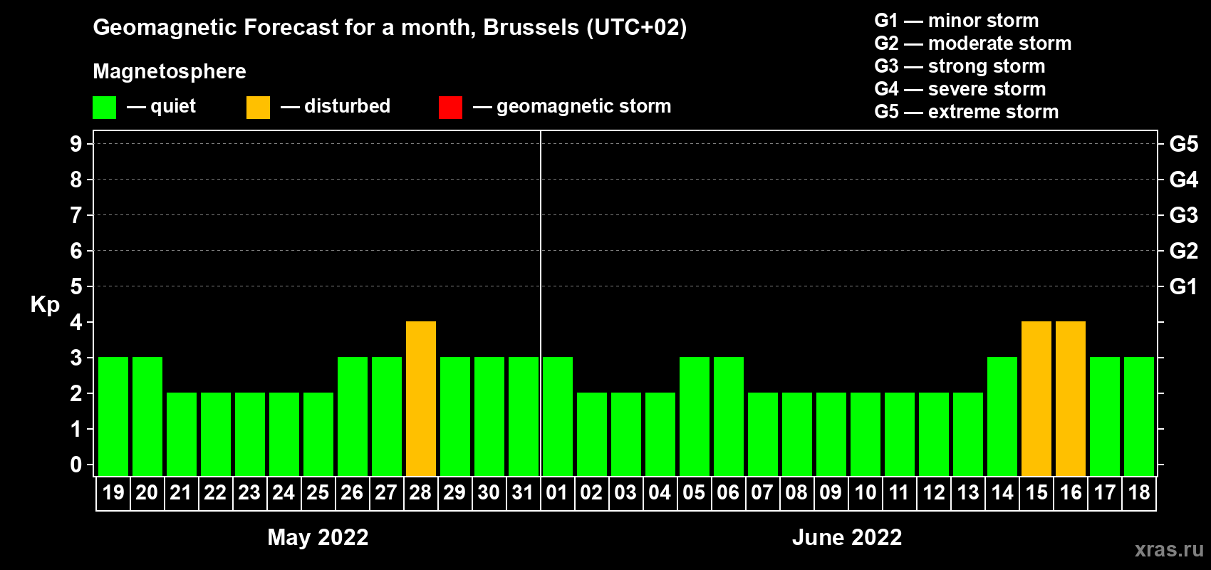Geomagnetic storm forecast in Brussels for May 19, 2022