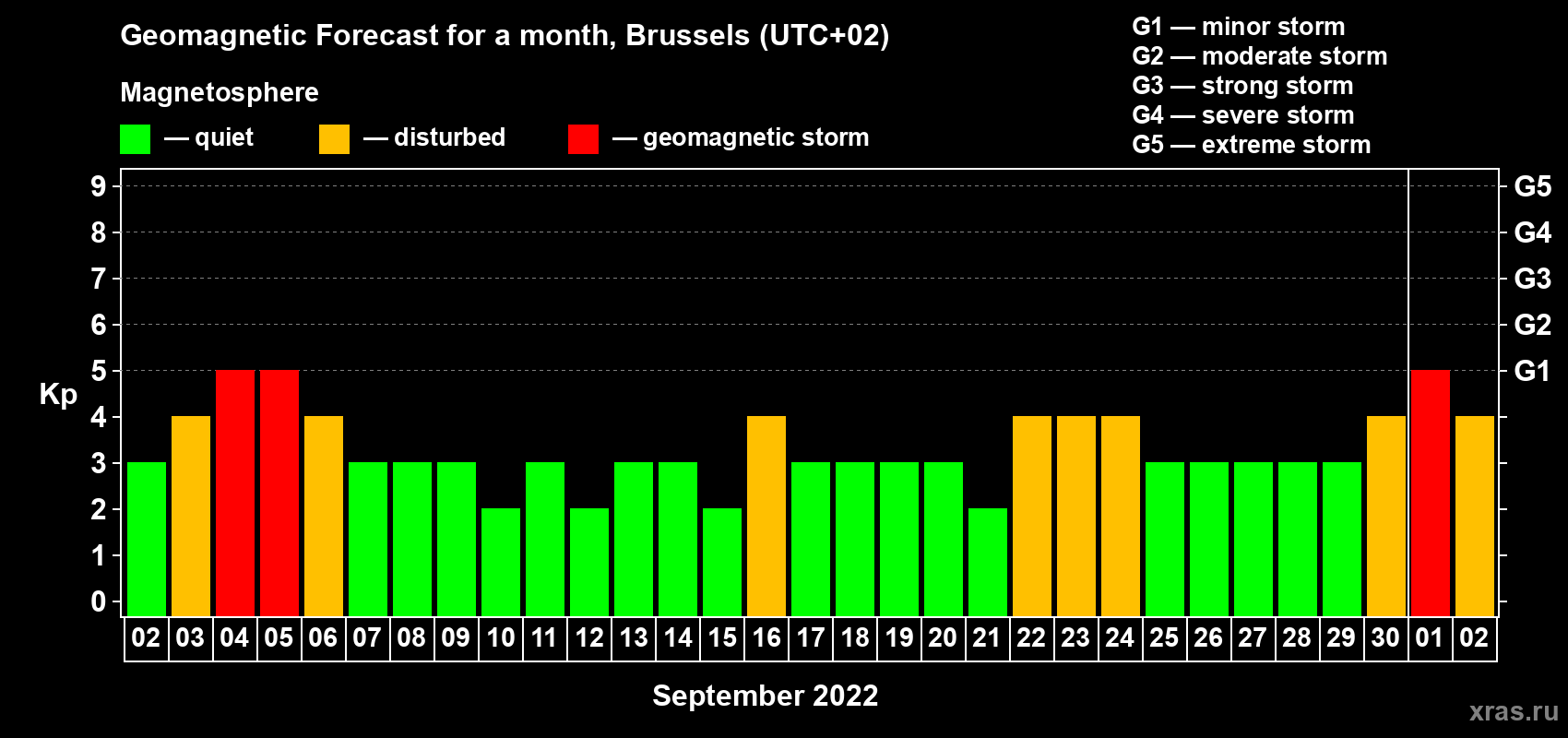 Geomagnetic storm forecast in Brussels for Sep 02, 2022
