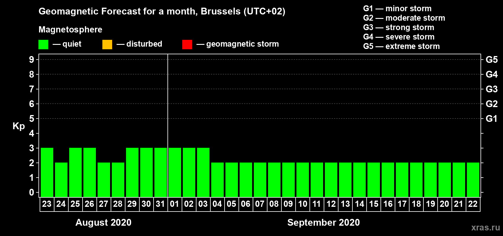 Geomagnetic activity forecast in Brussels — Aug 23, 2020