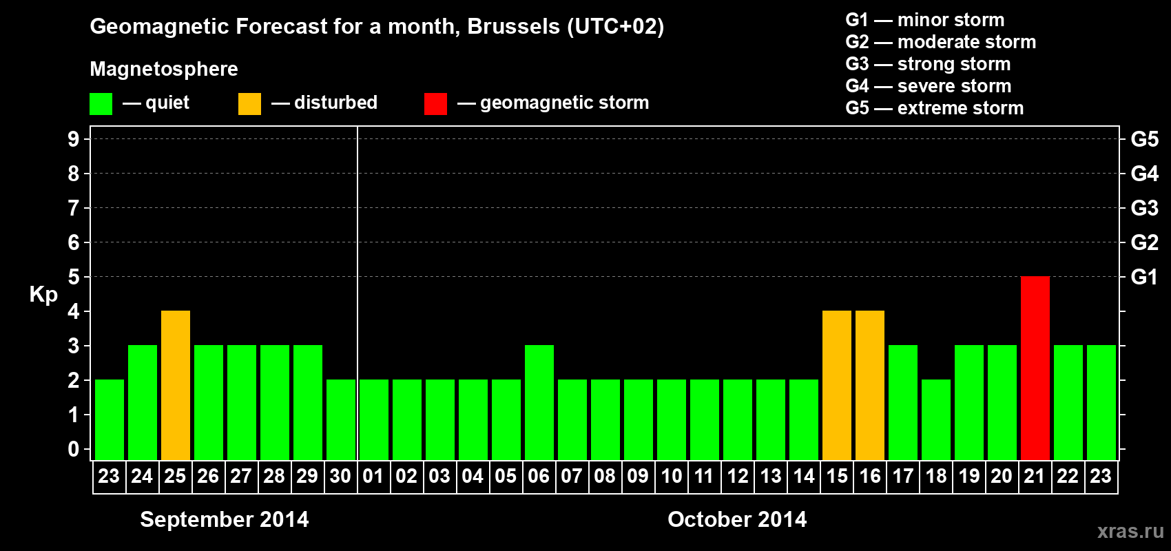 Geomagnetic activity forecast in Brussels — Sep 23, 2014