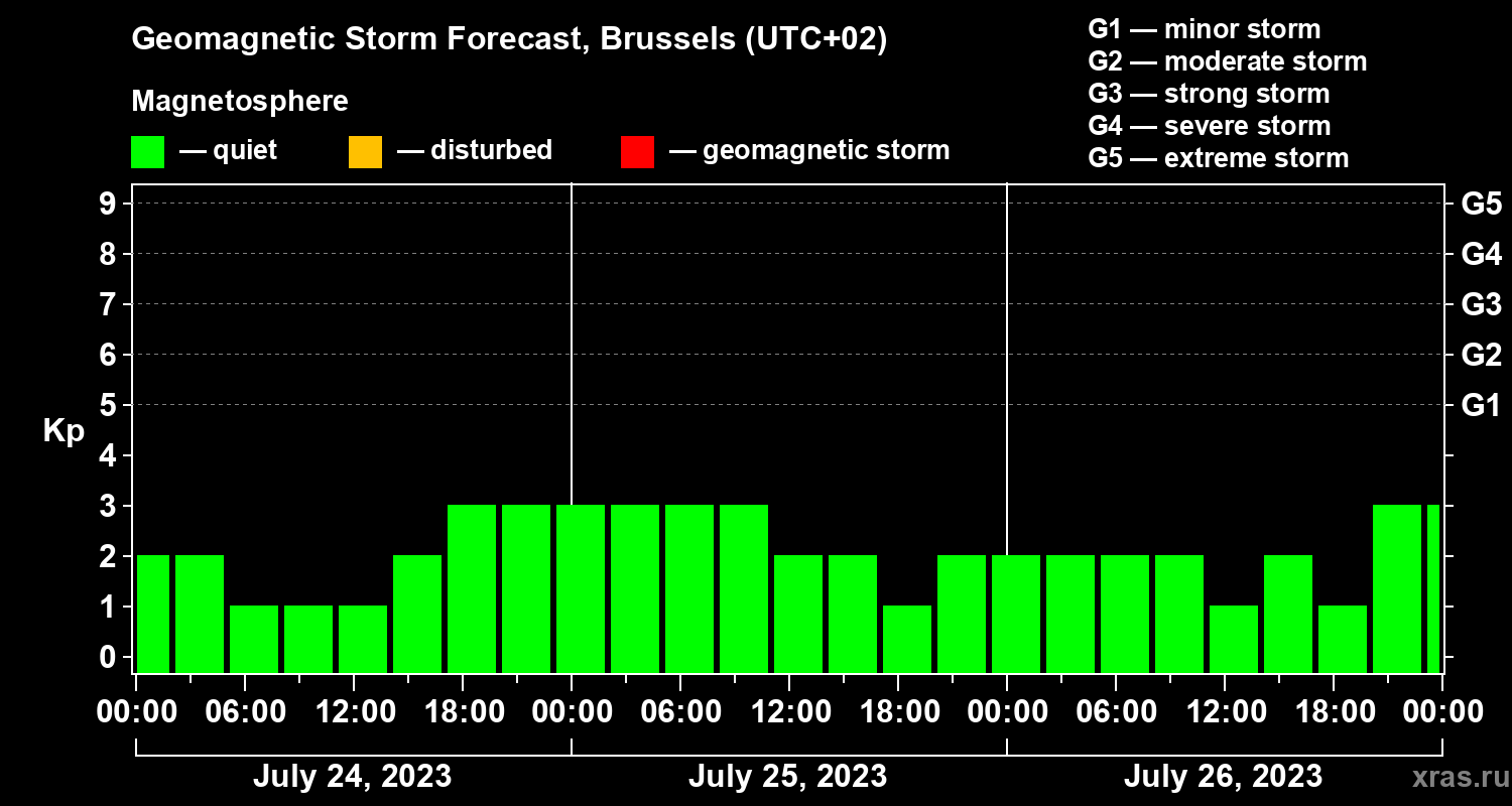 Geomagnetic activity forecast in Brussels — Jul 24, 2023