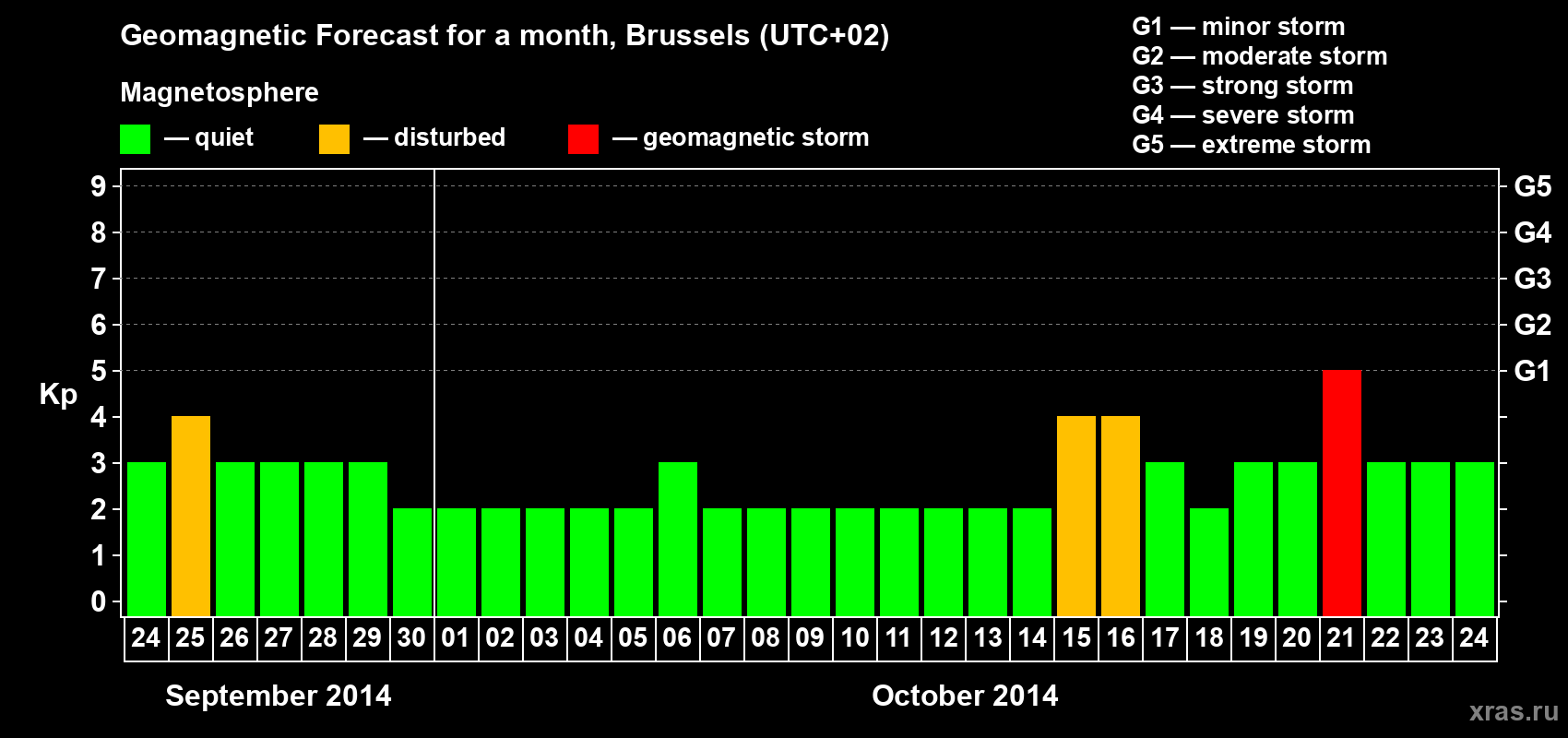Geomagnetic storm forecast in Brussels for Sep 24, 2014