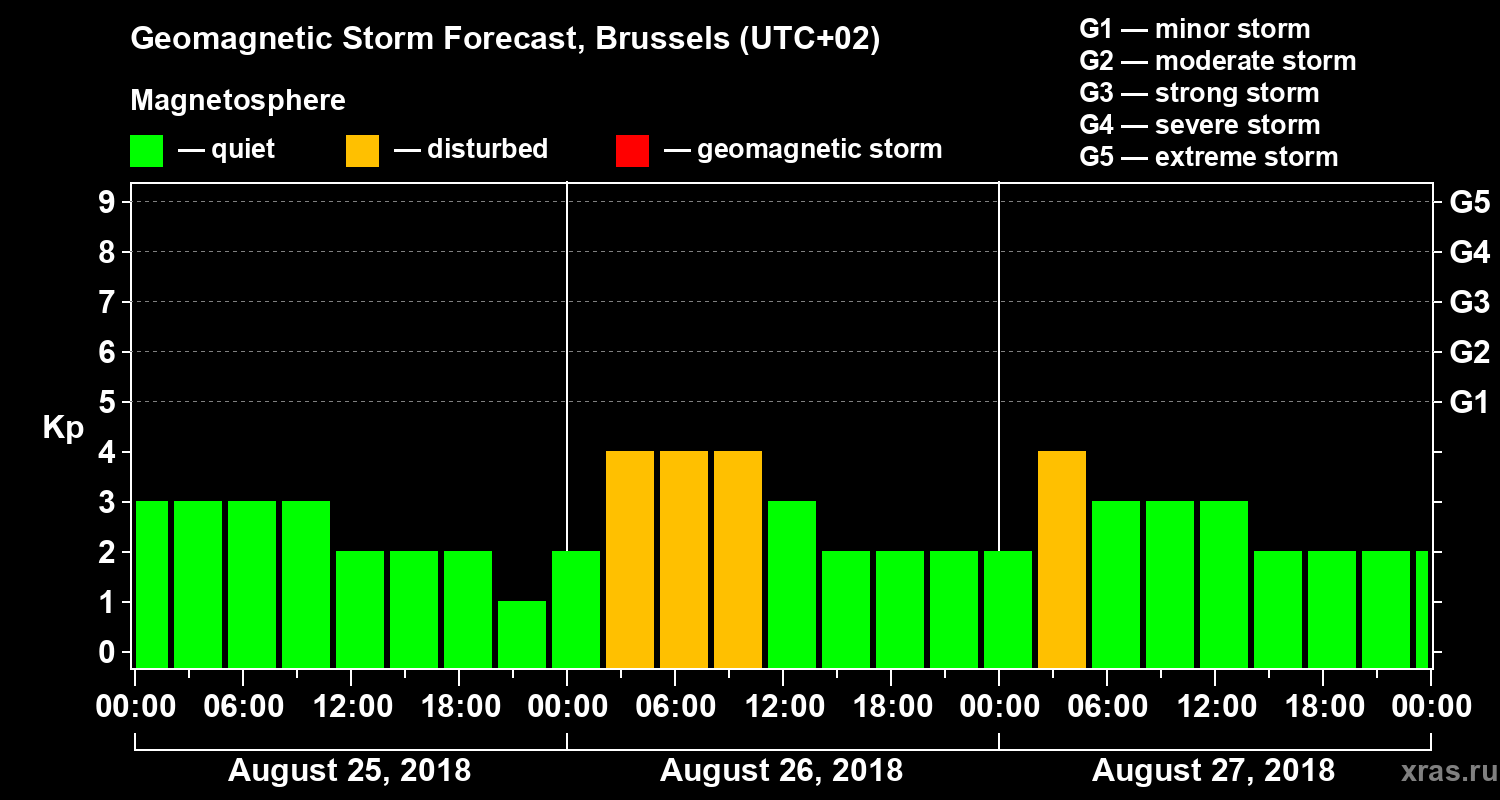 Geomagnetic storm forecast in Brussels for Aug 25, 2018