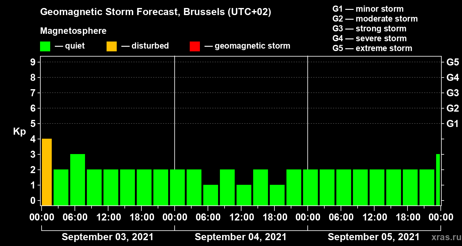 Geomagnetic storm forecast in Brussels for Sep 03, 2021